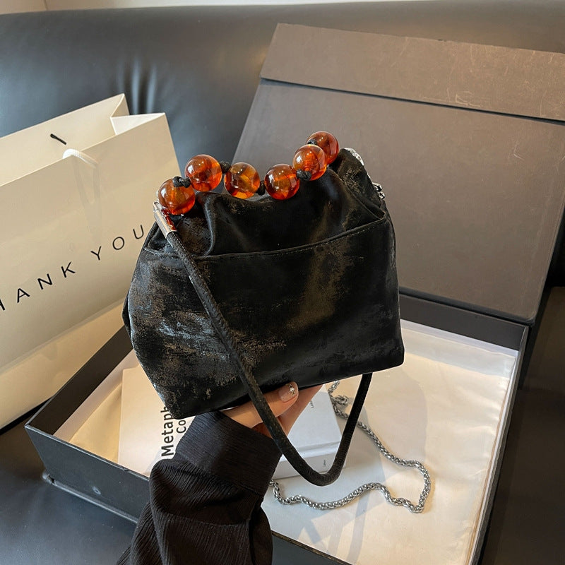 VLOVELAW 2025 Korean version of niche portable pearl fashion commuter messenger bag women's popular new trendy versatile high-end bucket bag