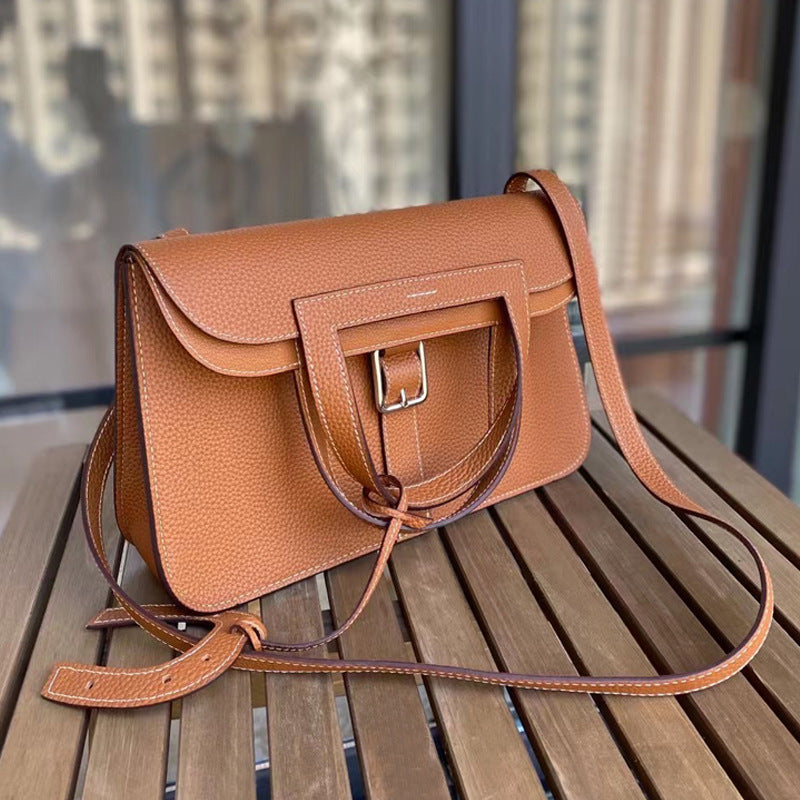 VLOVELAW 2025 Lychee pattern first layer cowhide horseshoe bag genuine leather business commuter white-collar handbag fashionable and simple shoulder briefcase