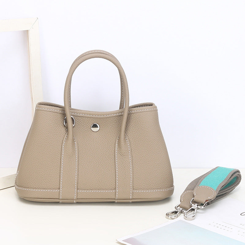 VLOVELAW 2025 New version, first-layer cowhide garden bag, genuine leather, fashionable large-capacity tote bag, wide shoulder strap, shoulder bag, commuter handbag.
