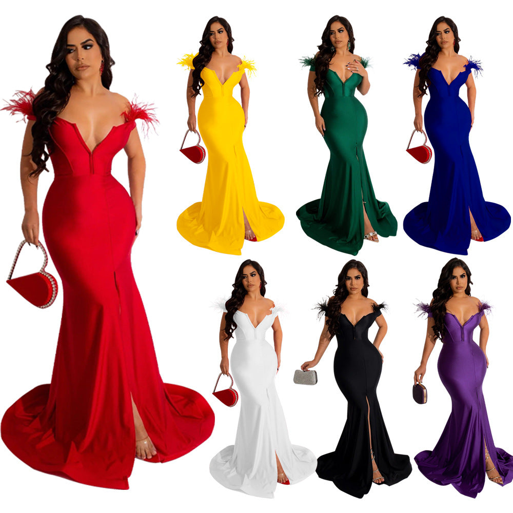 VLOVELAW 339 Cross Border Fashion Women's Wear Hot Dress Solid Color and V-neck Sleeveless Split Fishtail Skirt