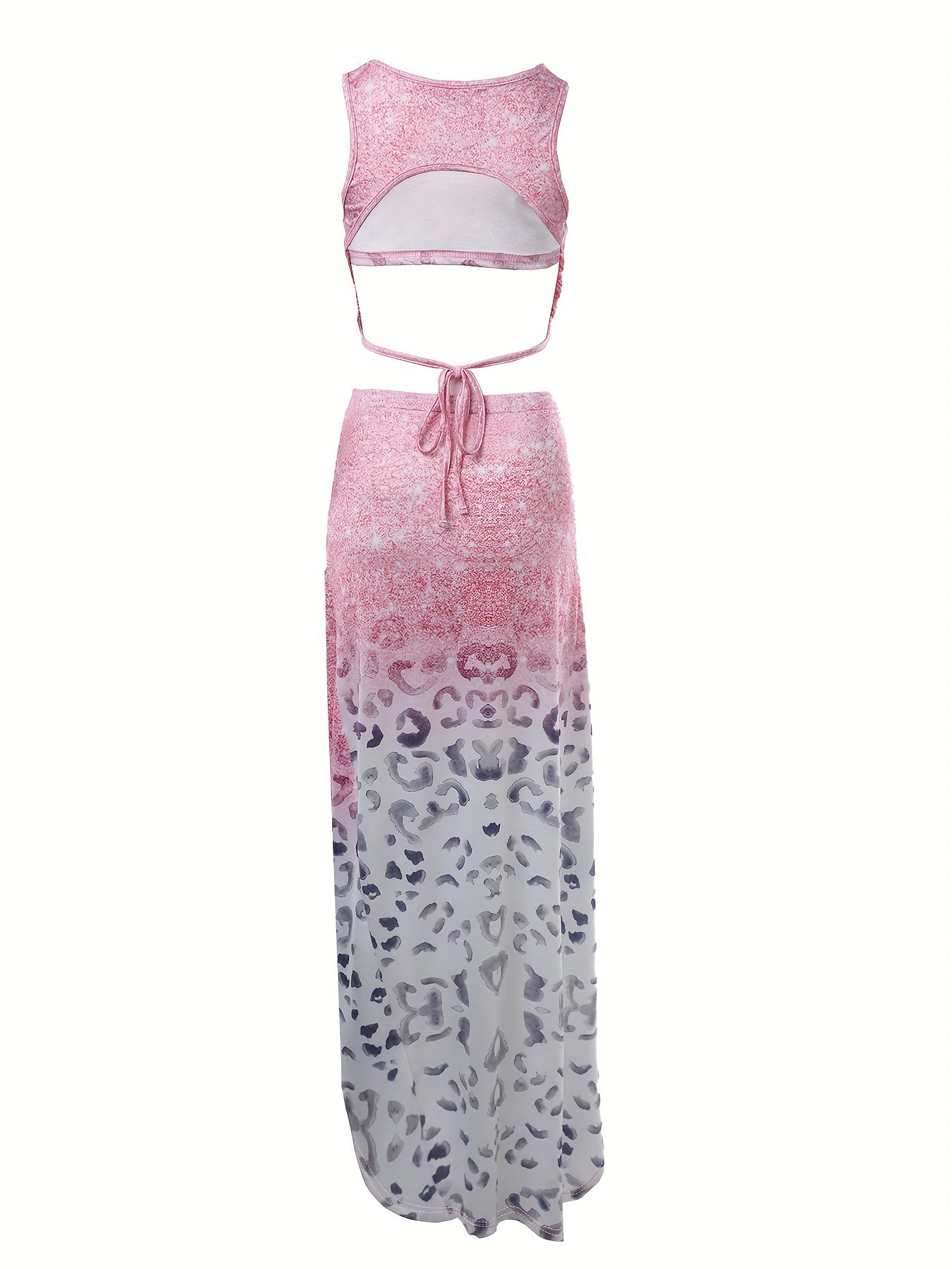 vlovelaw Allover Print Vacation Casual Summer Two-piece Skirt Set, Tie Back Crew Neck Tank Top & Drawstring Skirt Outfits, Women's Clothing