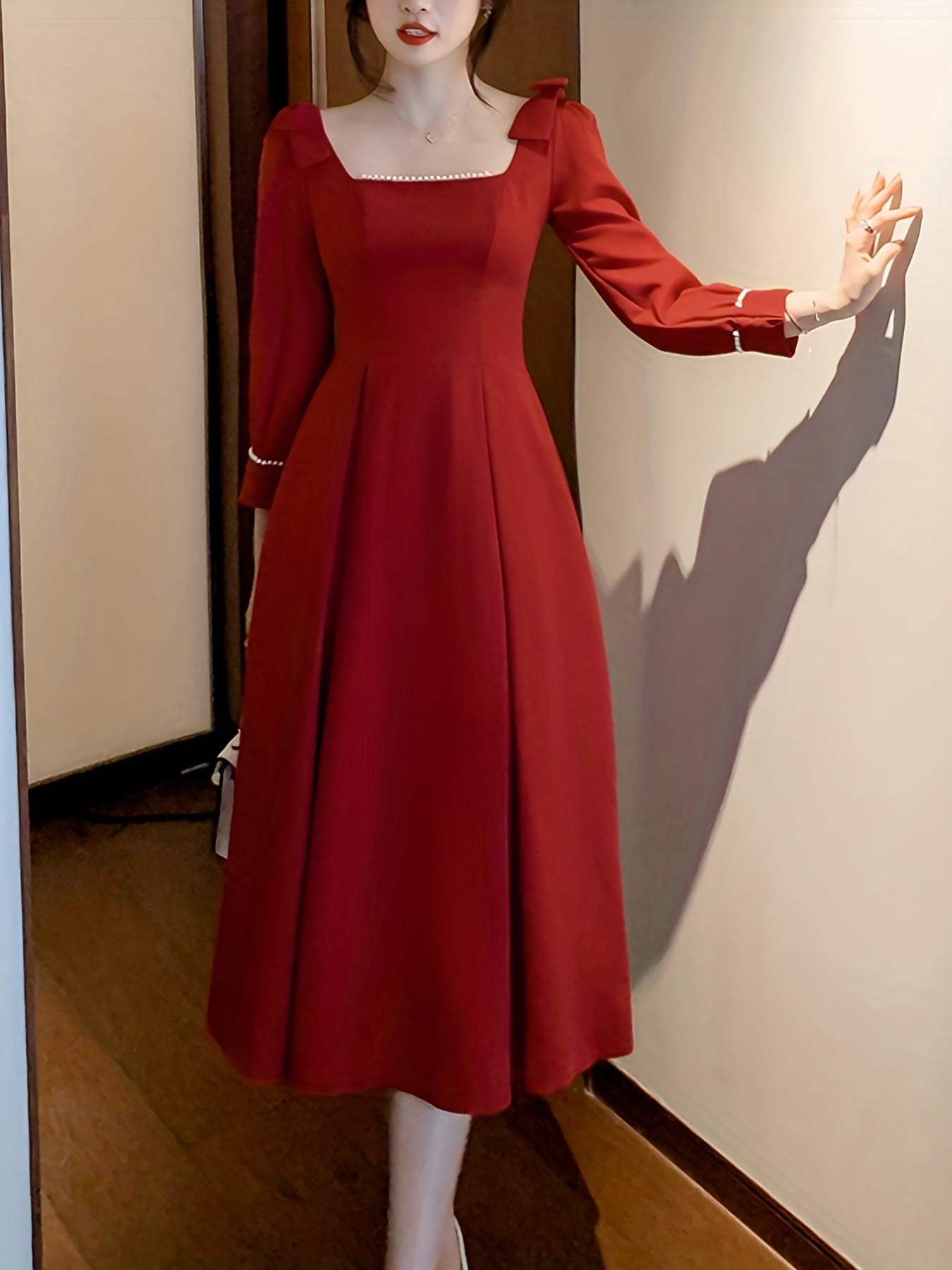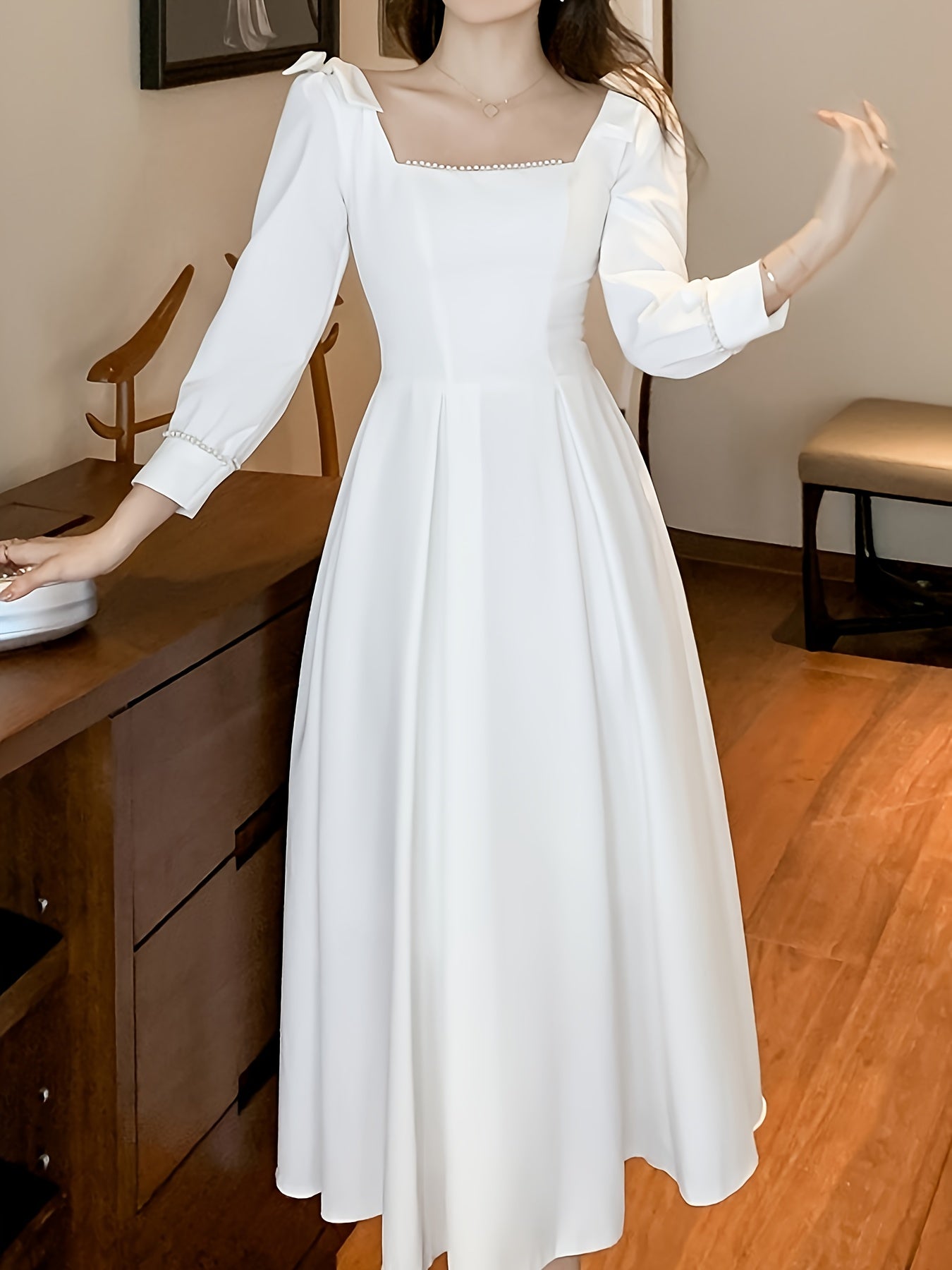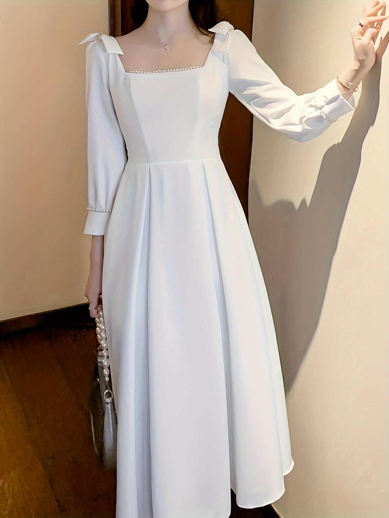 vlovelaw Beaded Square Neck Dress, Elegant Bow Decor Aline Dress For Wedding Party, Women's Clothing