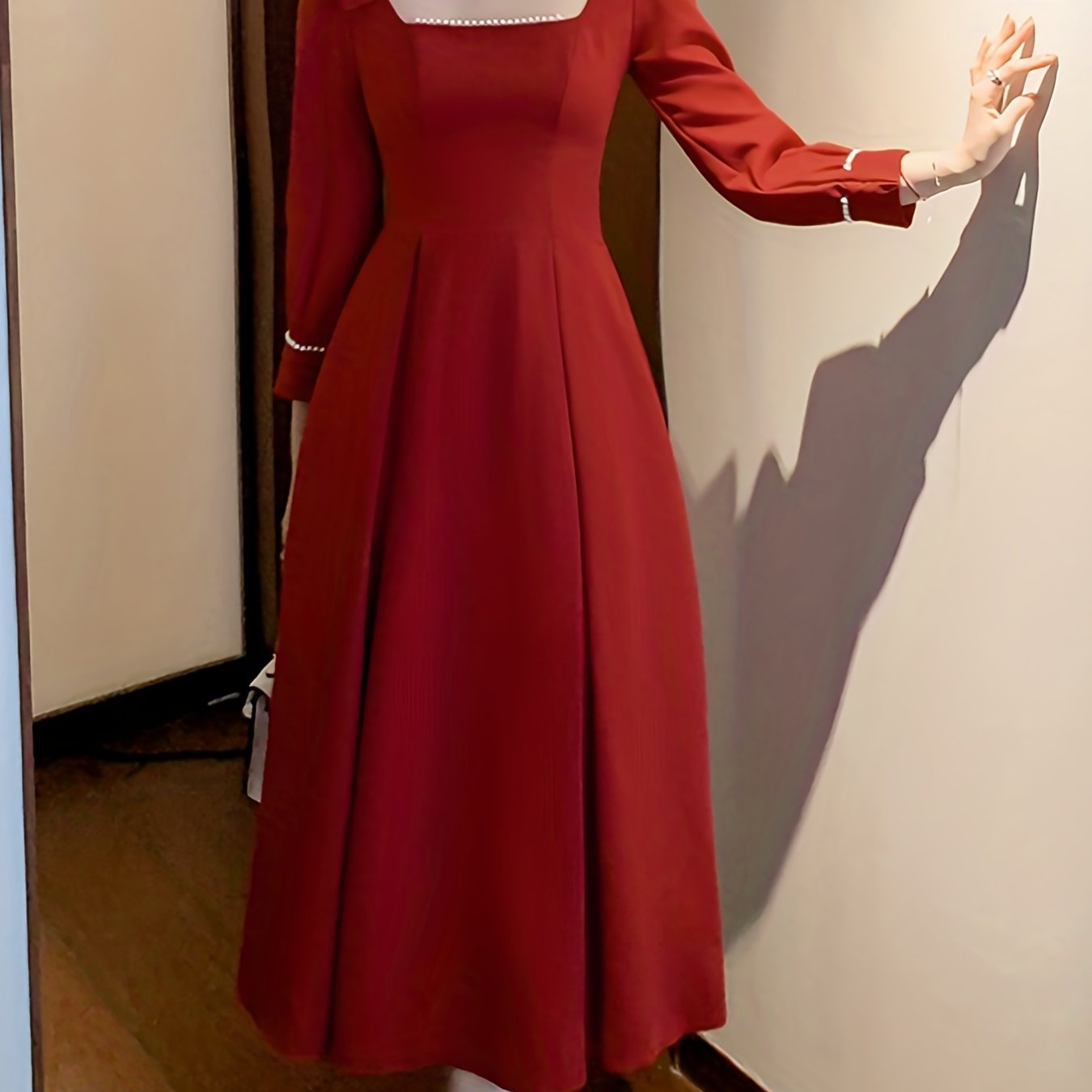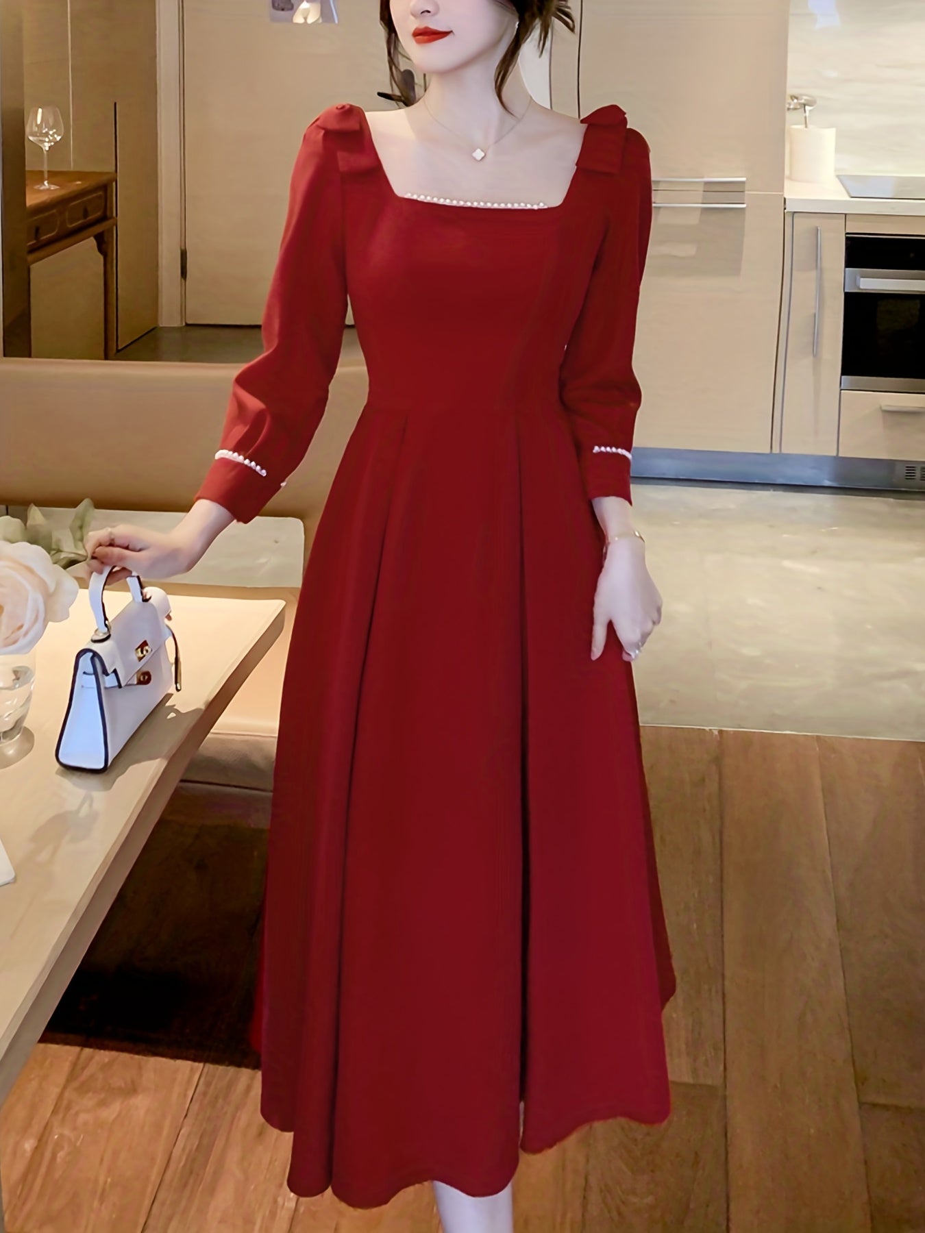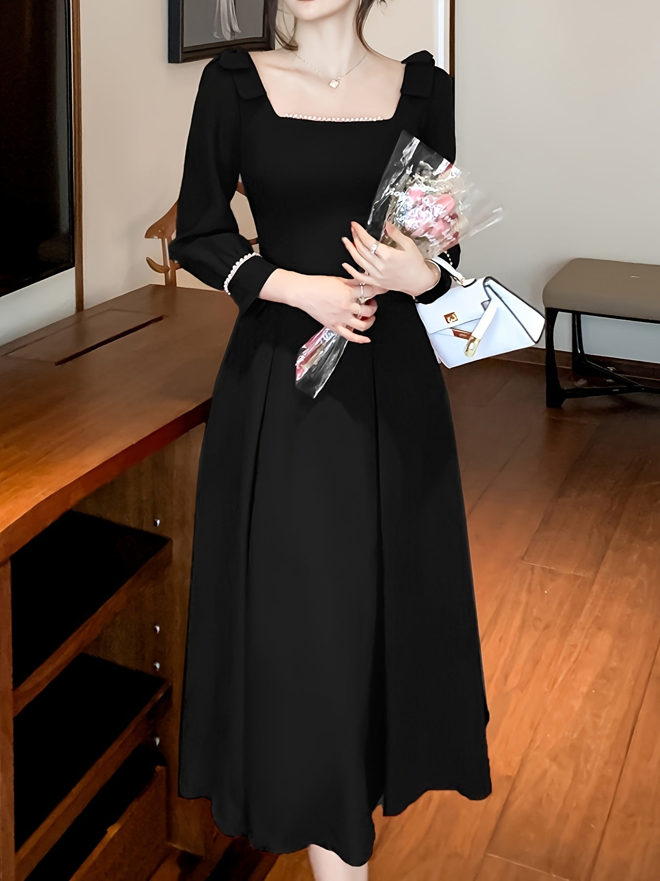 vlovelaw Beaded Square Neck Dress, Elegant Bow Decor Aline Dress For Wedding Party, Women's Clothing