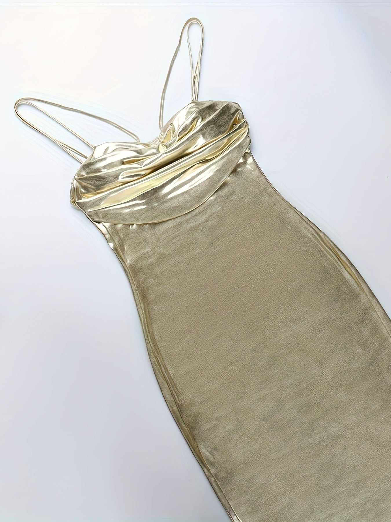 vlovelaw Bodycon Spaghetti Strap Dress, Stylish Backless Strap Ruched Dress, Women's Clothing