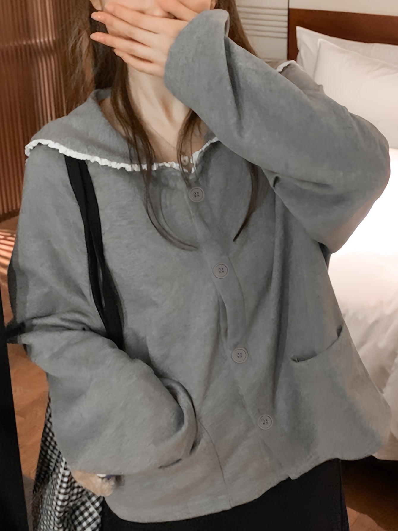 vlovelaw Button Front Lapel Jacket, Casual Long Sleeve Dual Pockets Outerwear For Fall & Winter, Women's Clothing