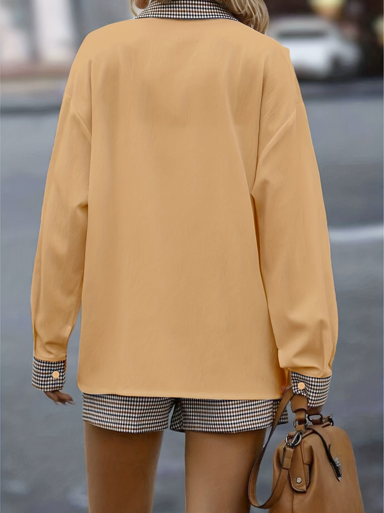 vlovelaw Casual Plaid Two-piece Shorts Set, Drop Shoulder Shirt & High Waist Shorts Outfits, Women's Clothing