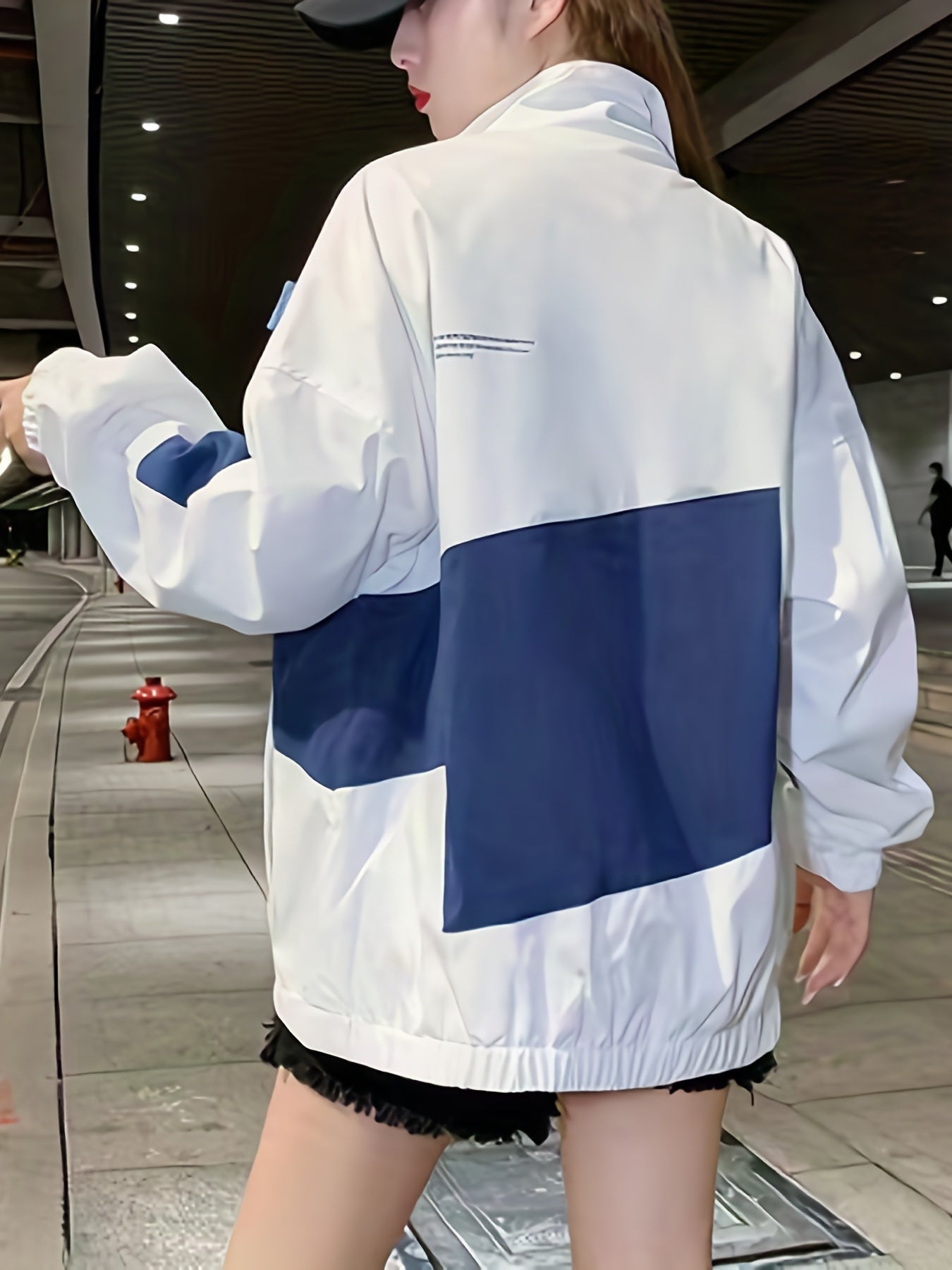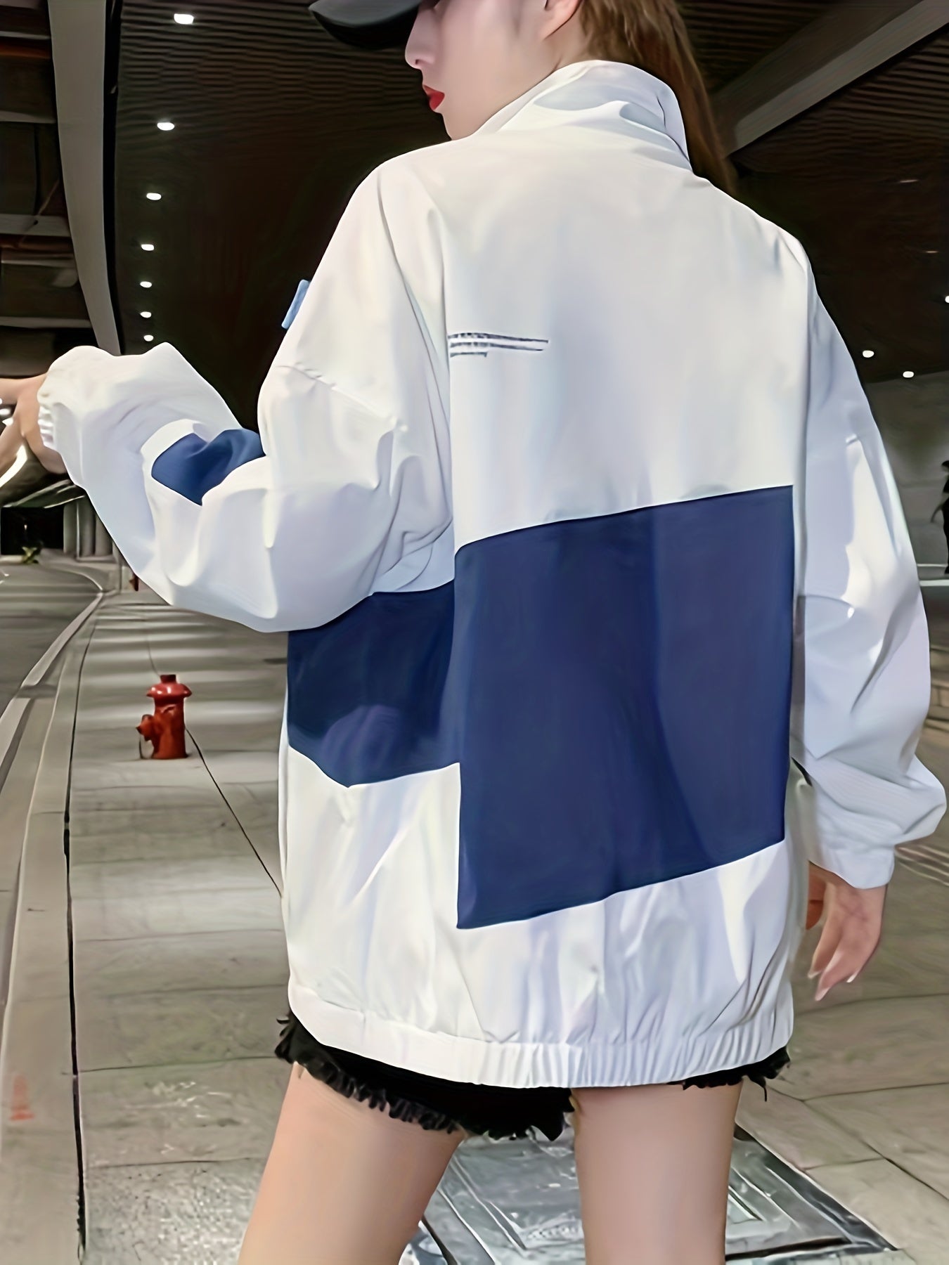 vlovelaw Color Block Zip Up Jacket, Casual Long Sleeve Jacket For Fall & Winter, Women's Clothing