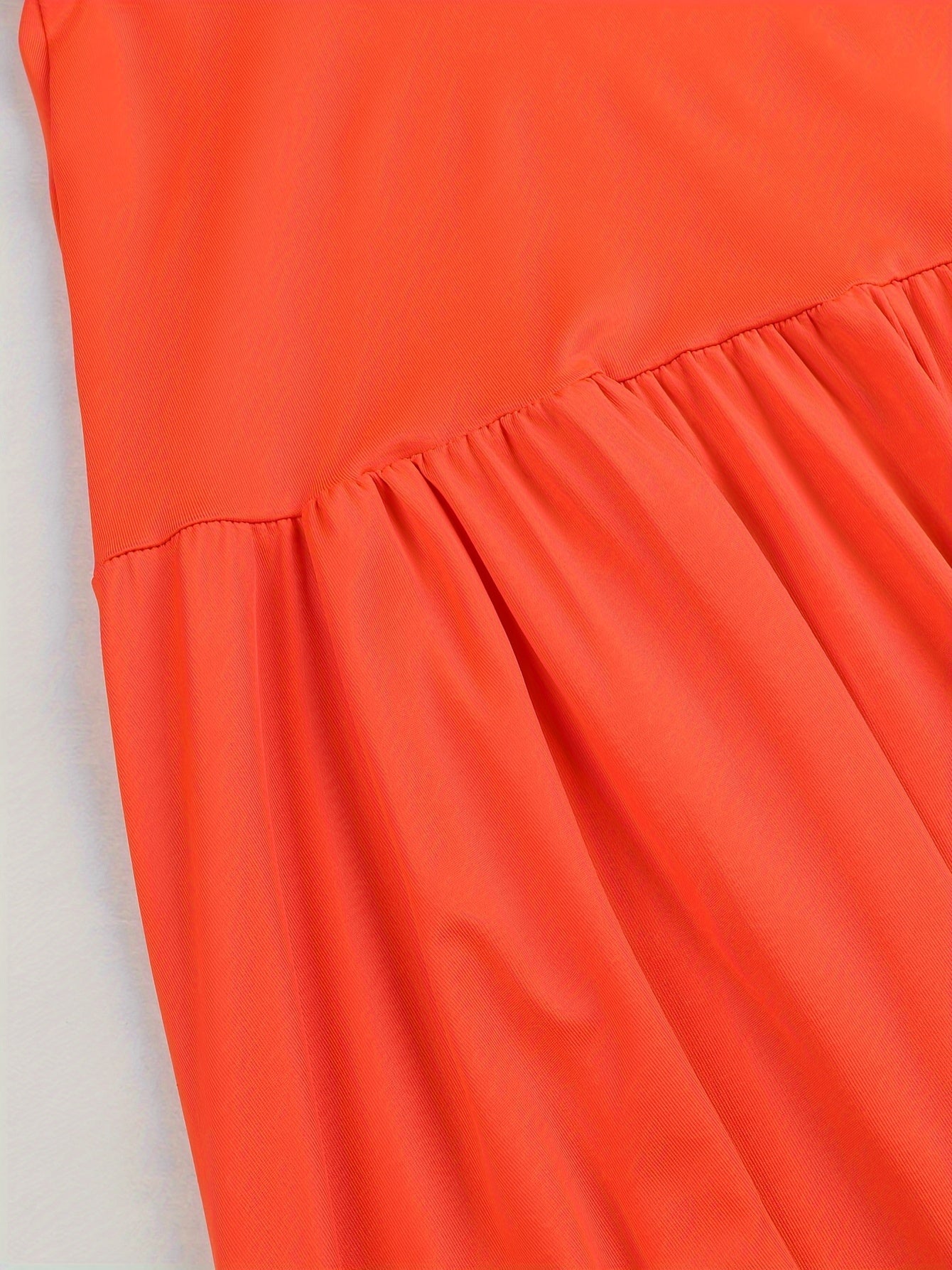 vlovelaw Elegant Solid Two-piece Skirt Set, Crop Halter Top & Ruffle Hem Split Court Train Skirt Outfits, Women's Clothing