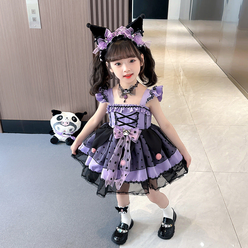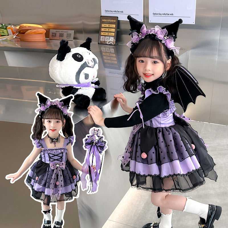 VLOVELAW Girls Clow M Lolita Princess Dress Halloween Autumn and Winter Long Sleeve Cos Costume Wings Children Luminous Skirt