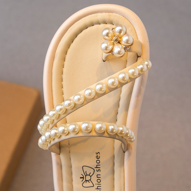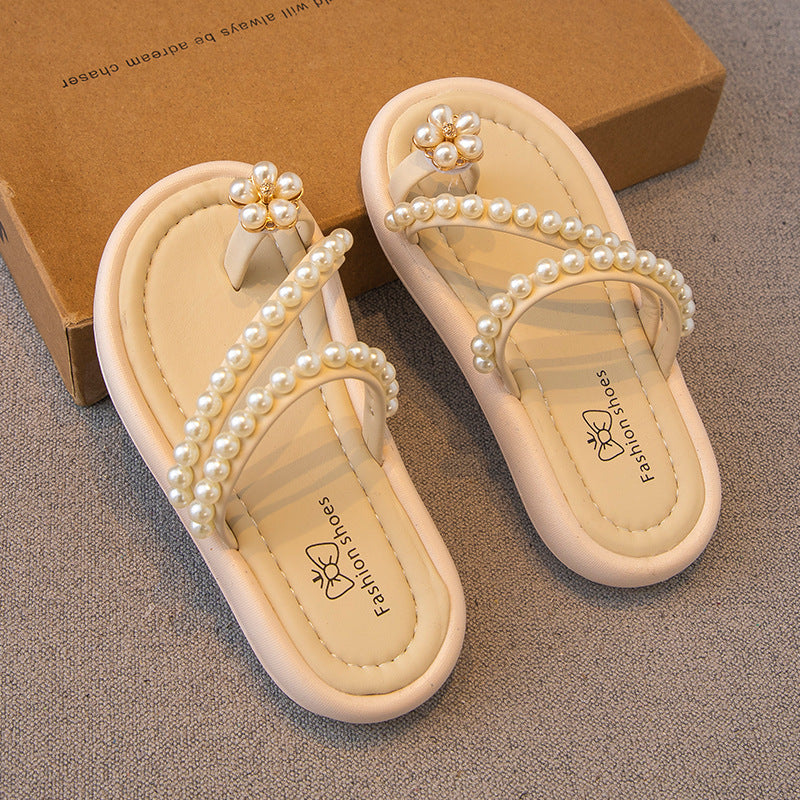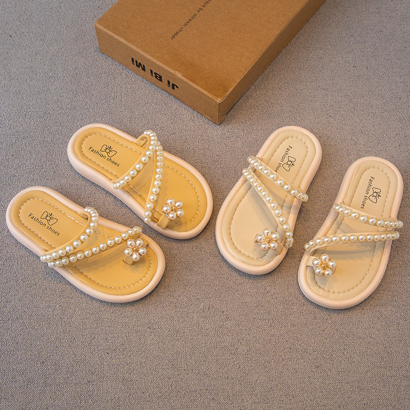 VLOVELAW Girls' Slipper Flip Toe Summer New Children's Shoes Girl Princess Shoes Soft Bottom Non Slip Outdoor Indoor Shoes