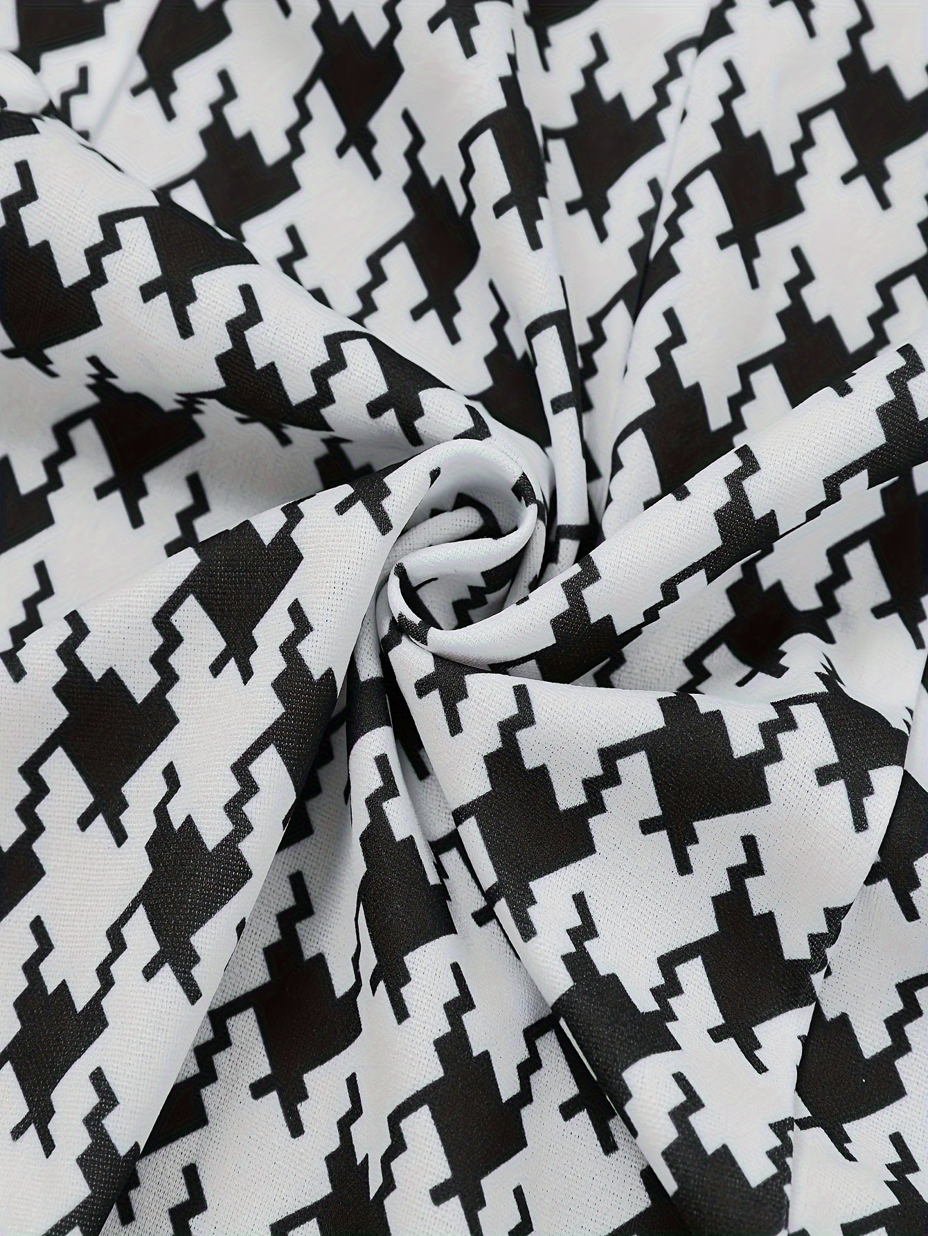 vlovelaw Houndstooth Pattern Two-piece Set, Long Sleeve Outerwear & Cami Dress Outfits, Women's Clothing