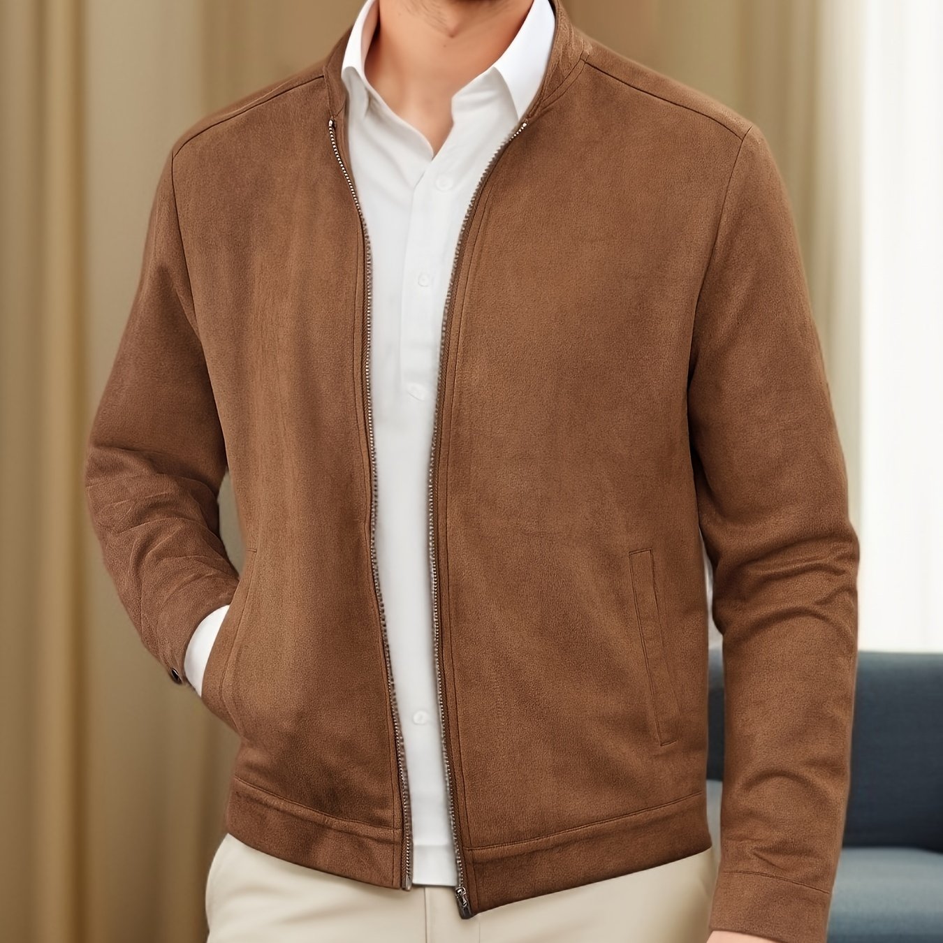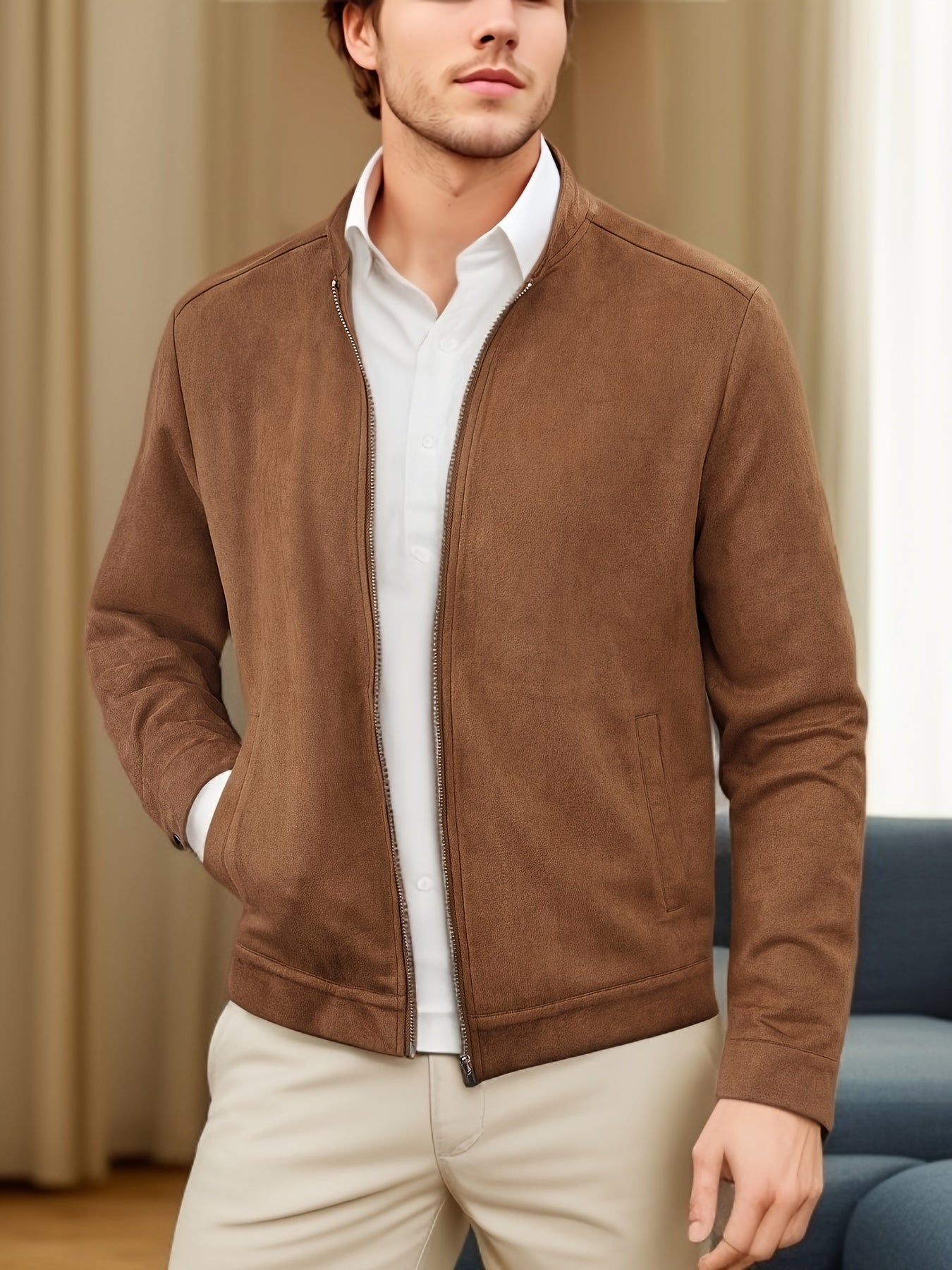 vlovelaw Men's Casual Suedette Zip Up Biker Jacket, Chic Faux Leather Jacket