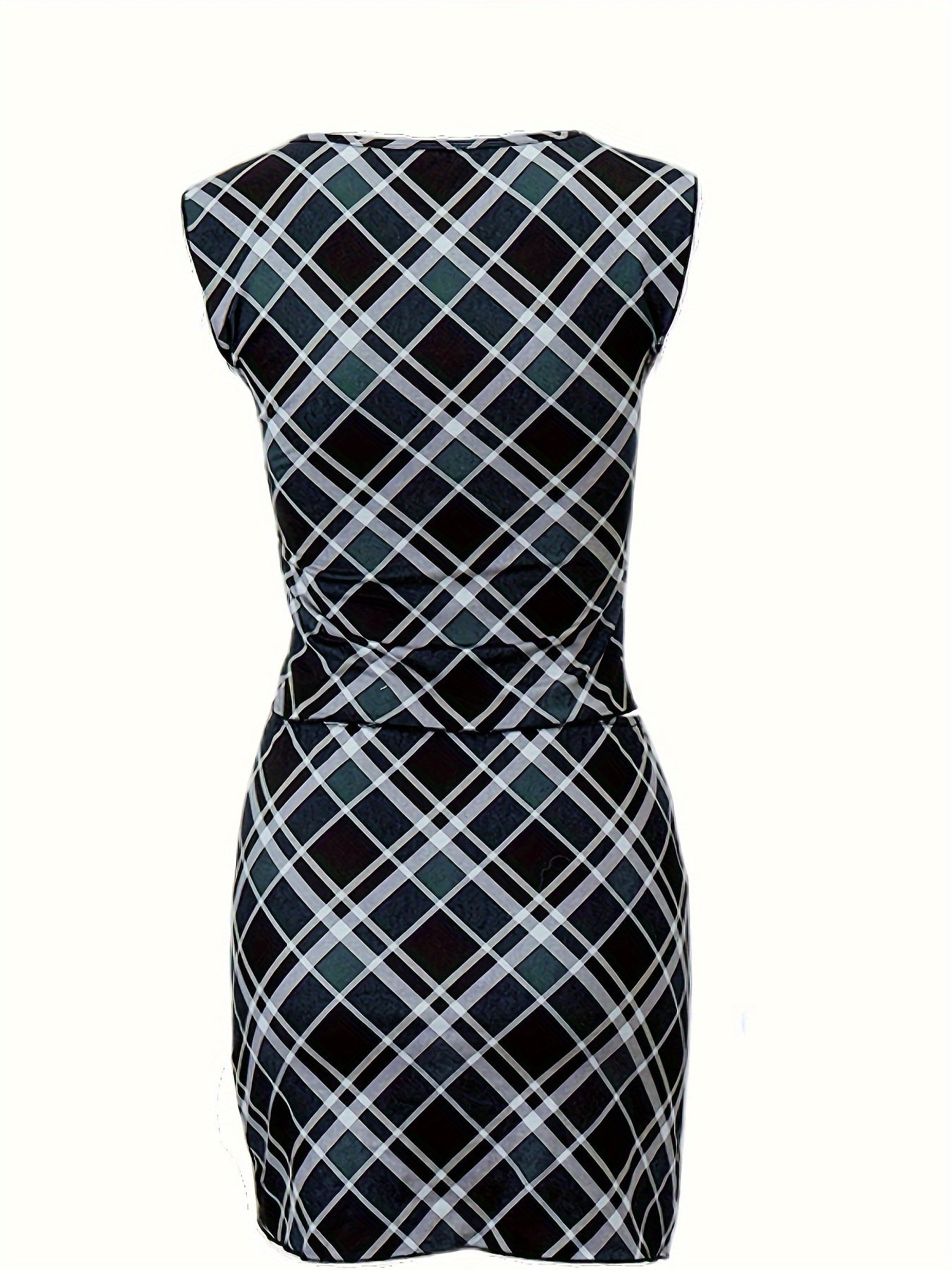 vlovelaw Plaid Print Two-piece Set, Y2K Sleeveless Split Top & High Waist Mini Skirt Outfits, Women's Clothing
