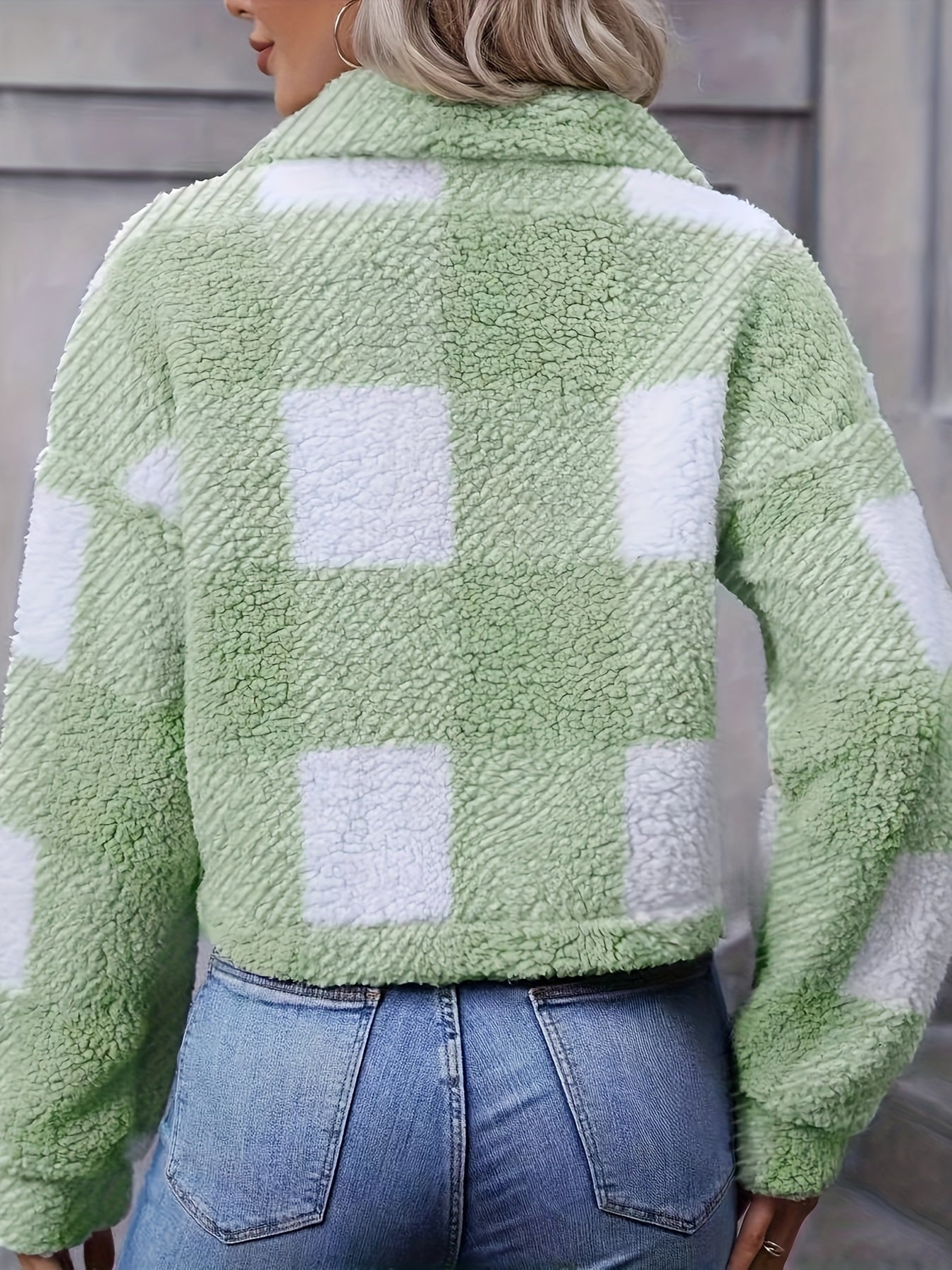vlovelaw Plaid Teddy Coat, Casual Button Front Long Sleeve Winter Warm Outerwear, Women's Clothing