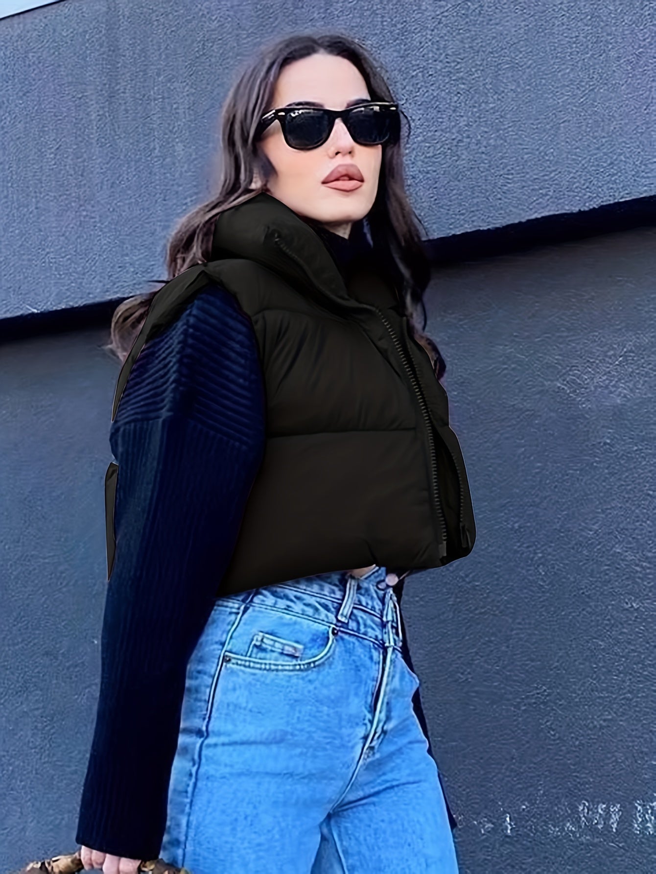 vlovelaw Plain Full Zipper Sporty Vest Jacket, Sleeveless Non-Stretch Casual Sports Outdoor Vest, Women's Clothing