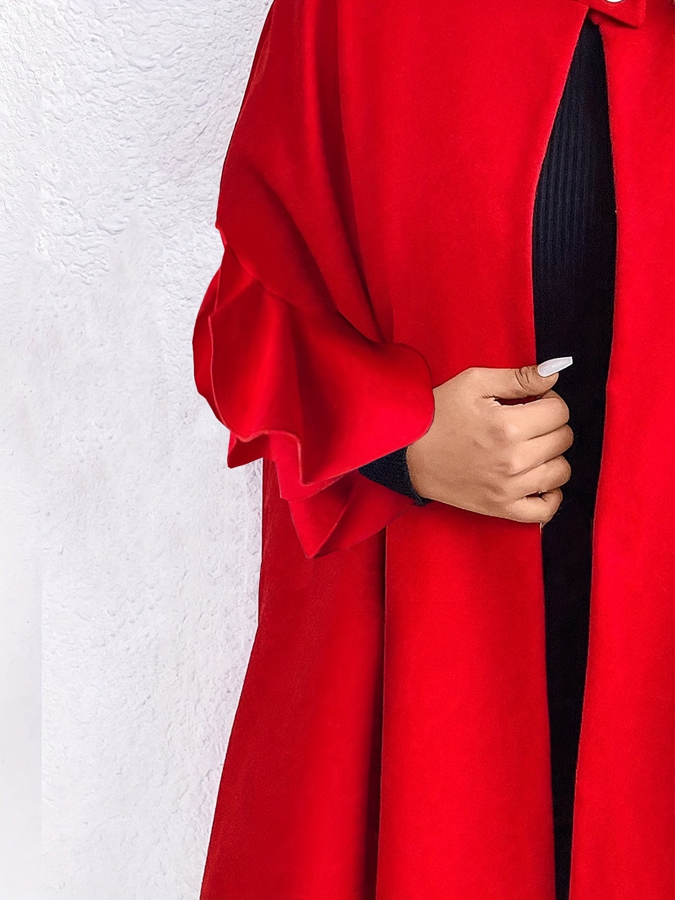 vlovelaw Plus Size Button Front Coat, Casual Ruffle Sleeve Coat For Fall & Winter, Women's Plus Size Clothing