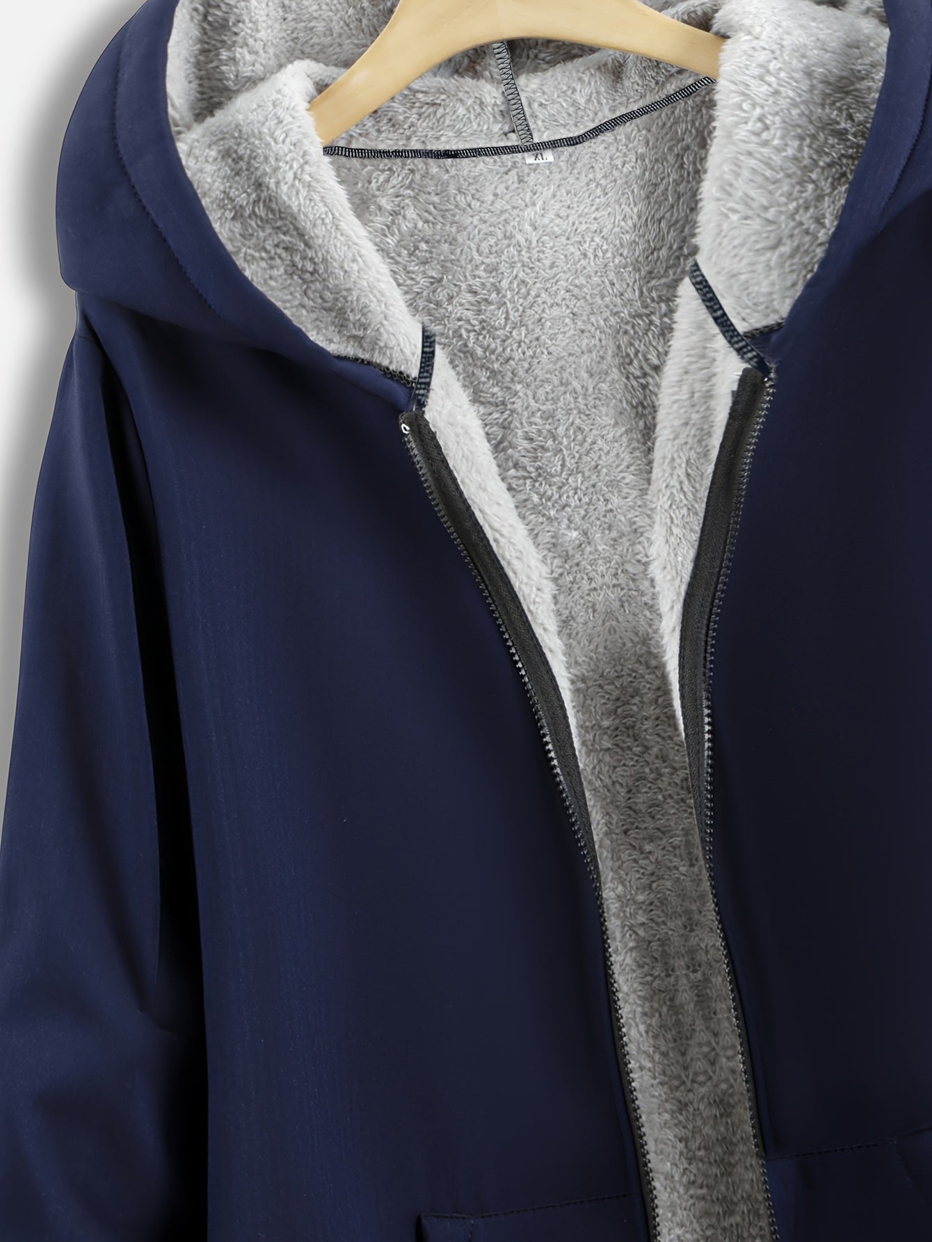 vlovelaw Plus Size Hoodie Fleece Liner Zip Up Coat, Women's Plus Warm Winter Casual Faux Fur Coat