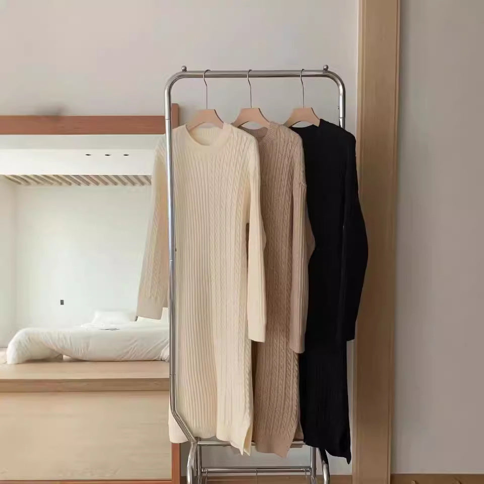 VLOVELAW retro crew neck twist knitted dress women's autumn and winter loose with coat sweater skirt with bottom long dress