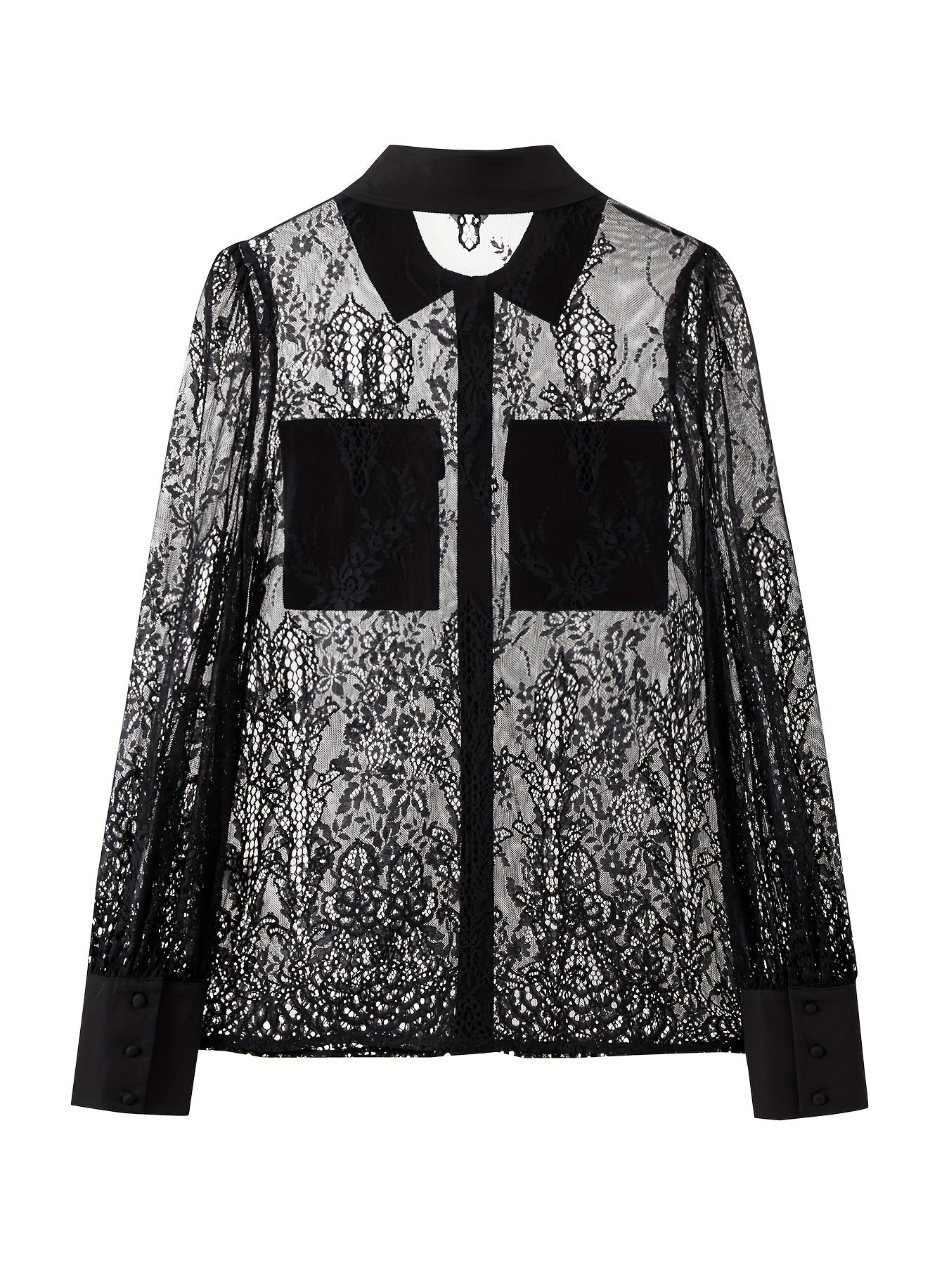 vlovelaw See Through Pocketed Sheer Mesh Blouse, Long Sleeve Button Front Blouse, Women's Clothing