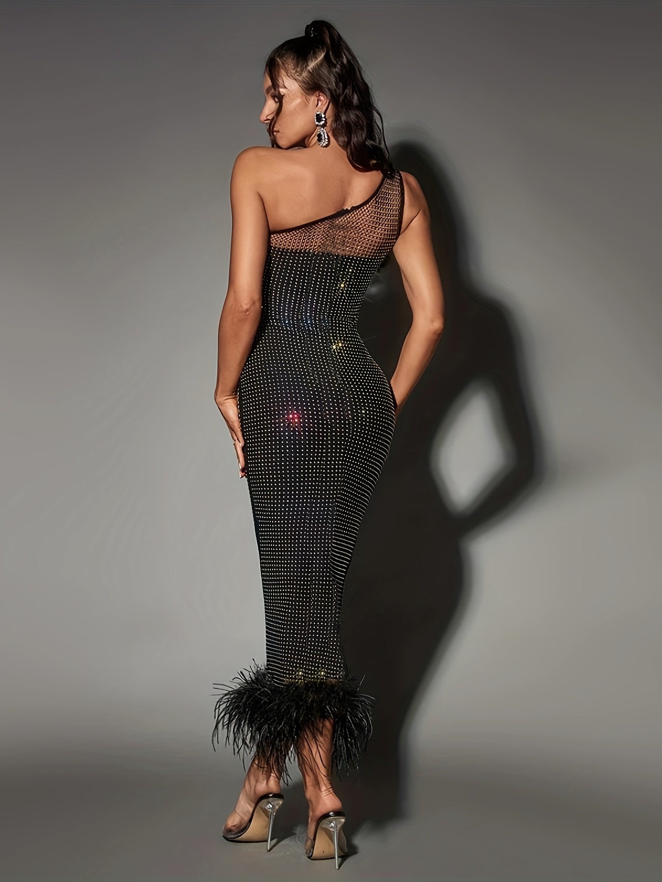 vlovelaw Sequin Mesh One Shoulder Dress, Elegant Sleeveless Dress For Party & Club, Women's Clothing