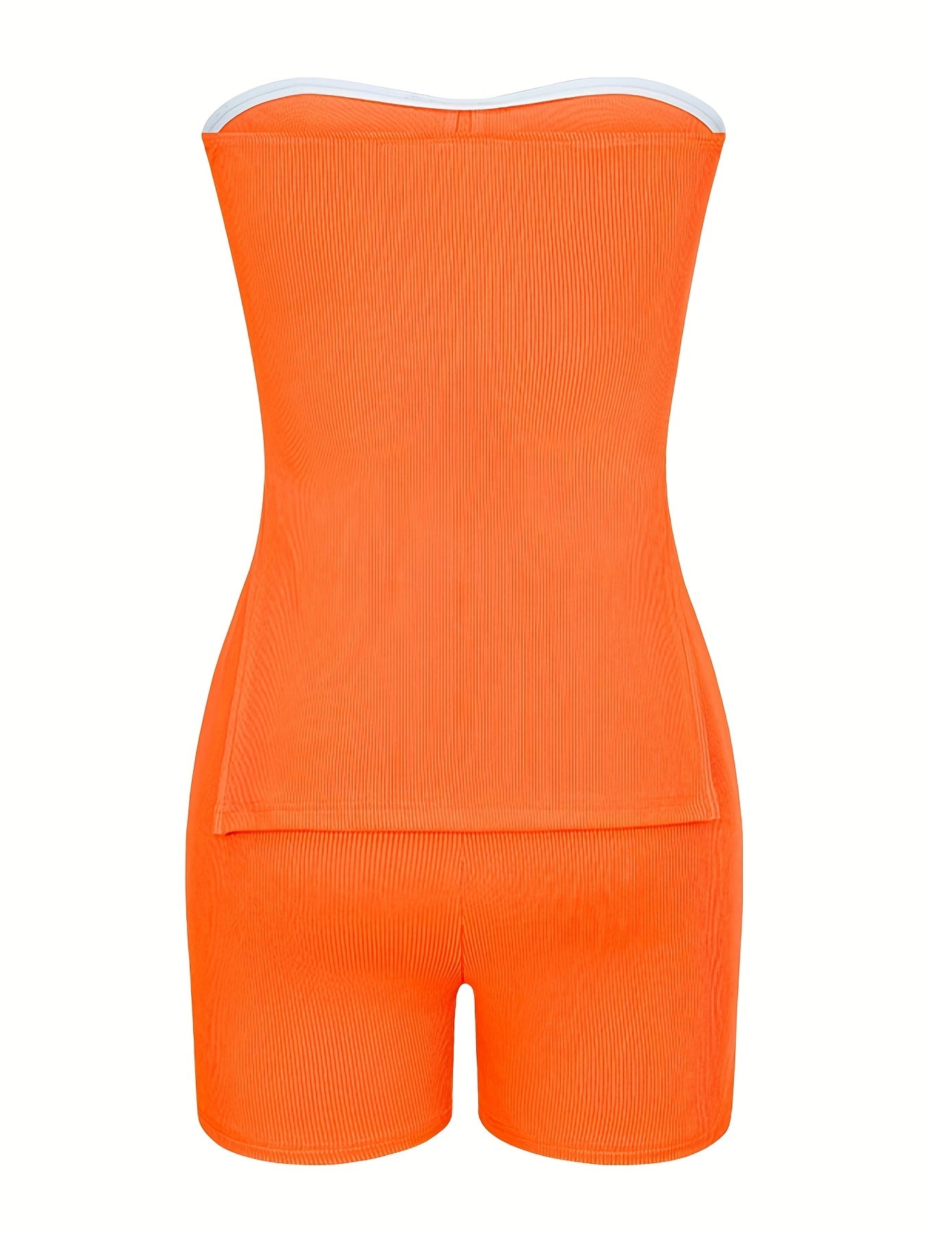 vlovelaw Sexy Matching Two-piece Set, Side Split Tube Top & Skinny Shorts Outfits, Women's Clothing
