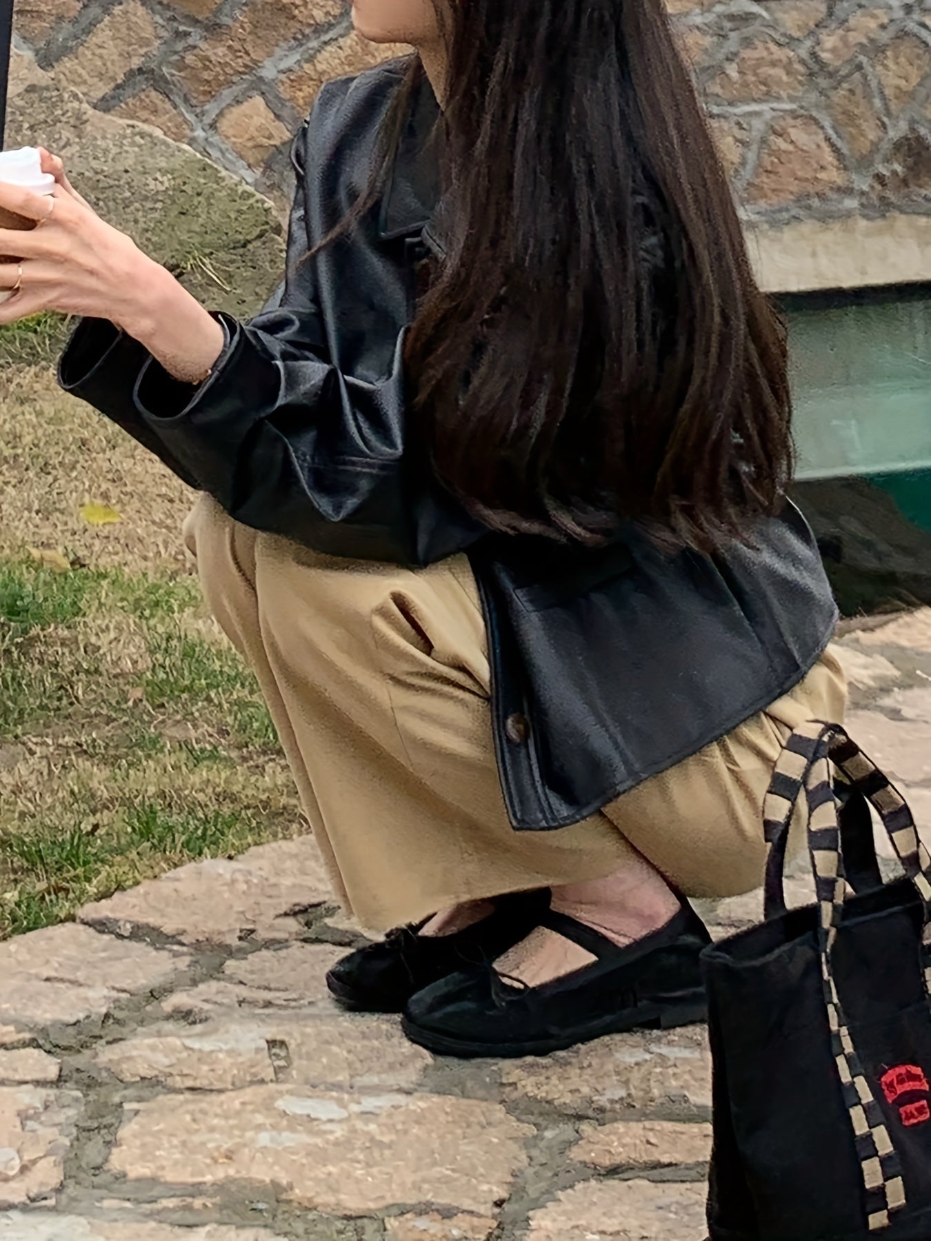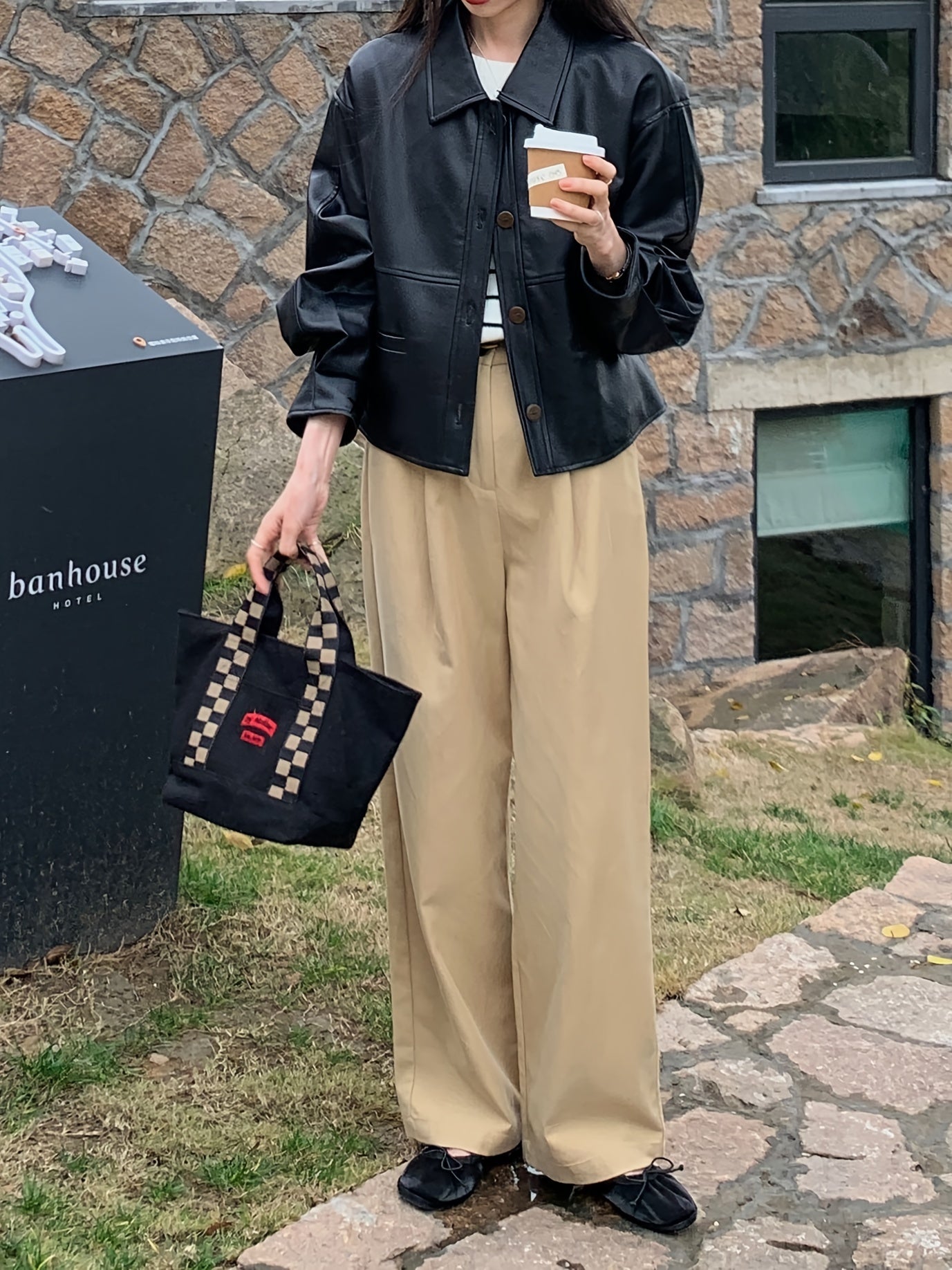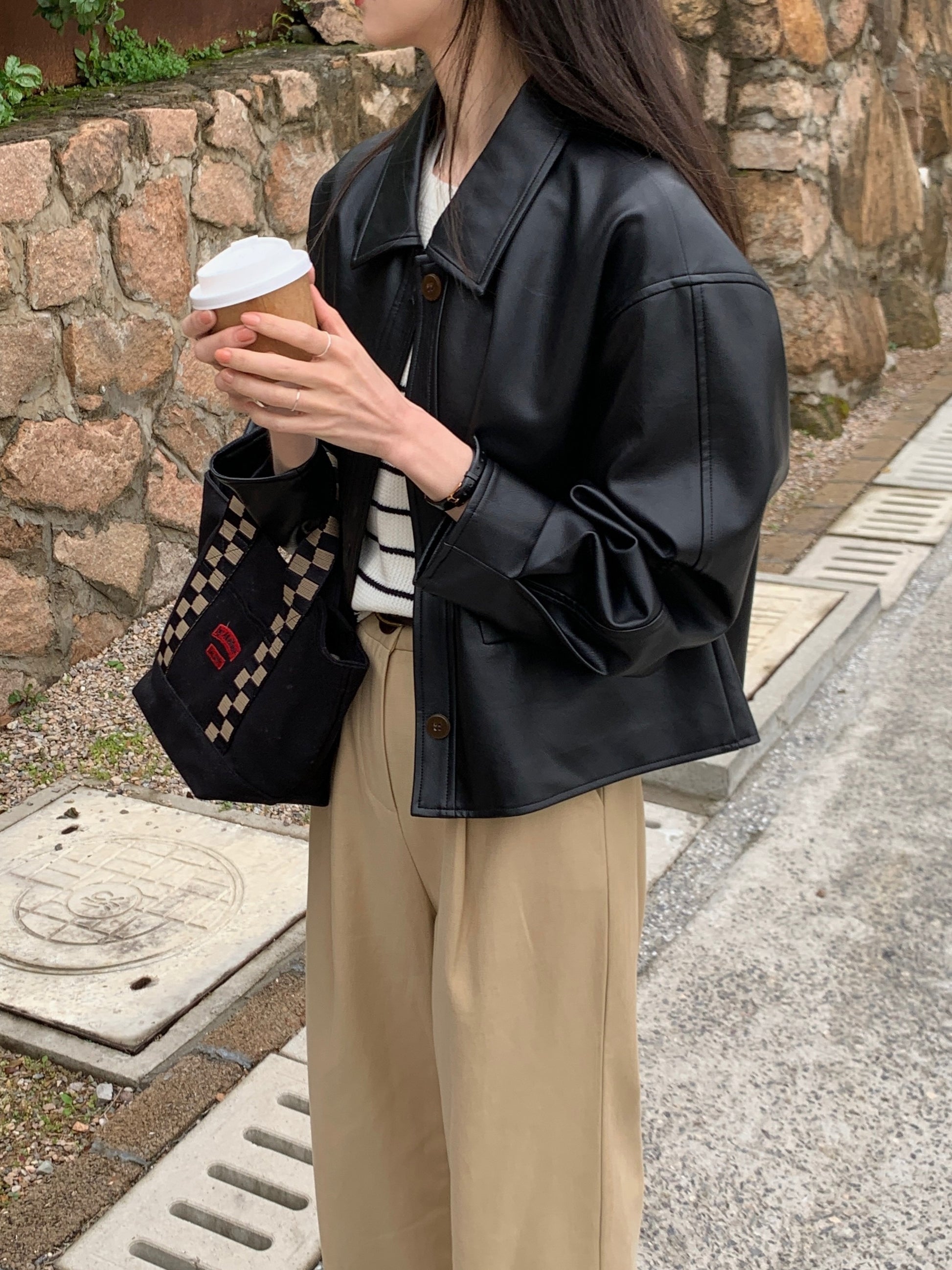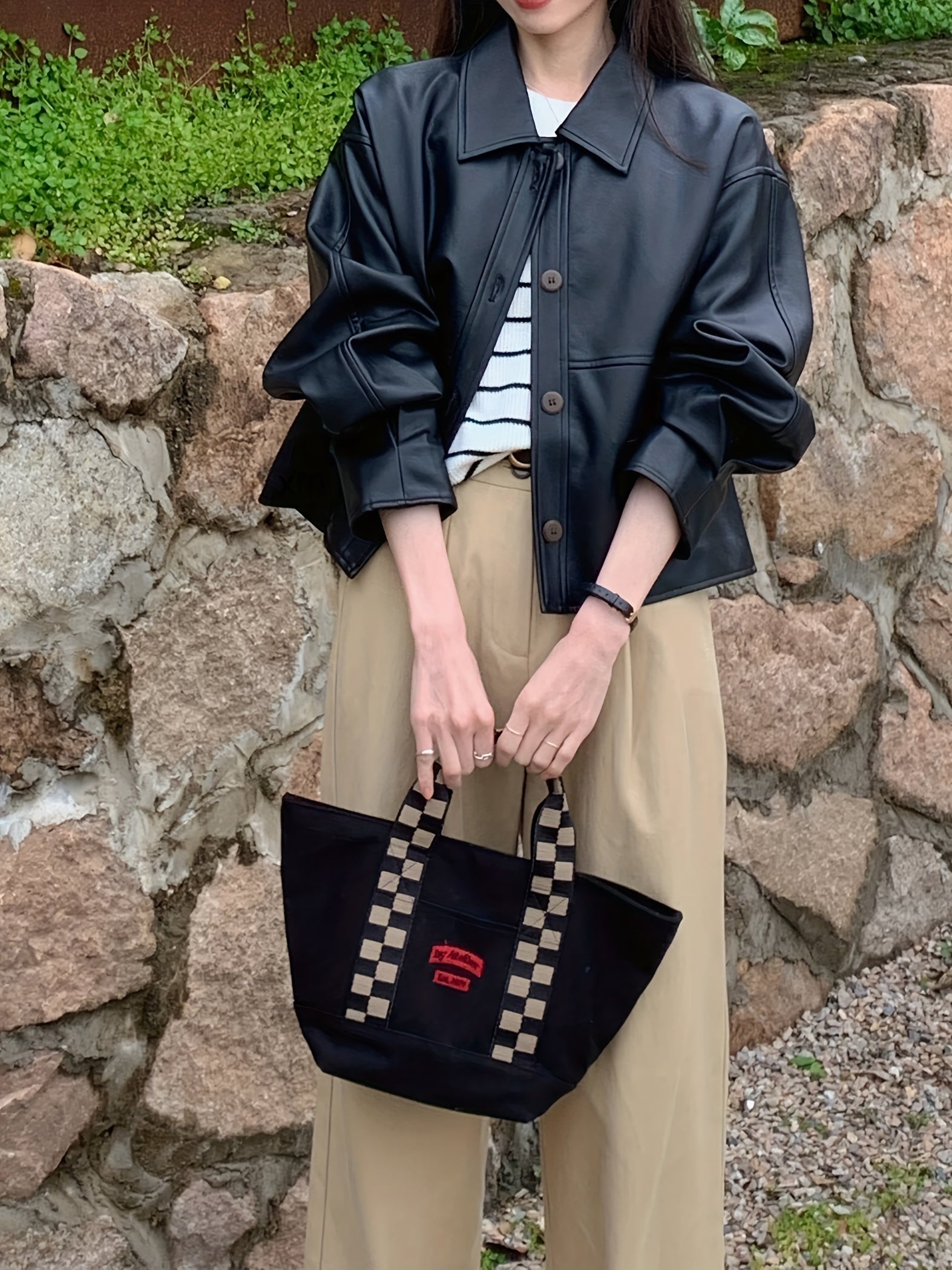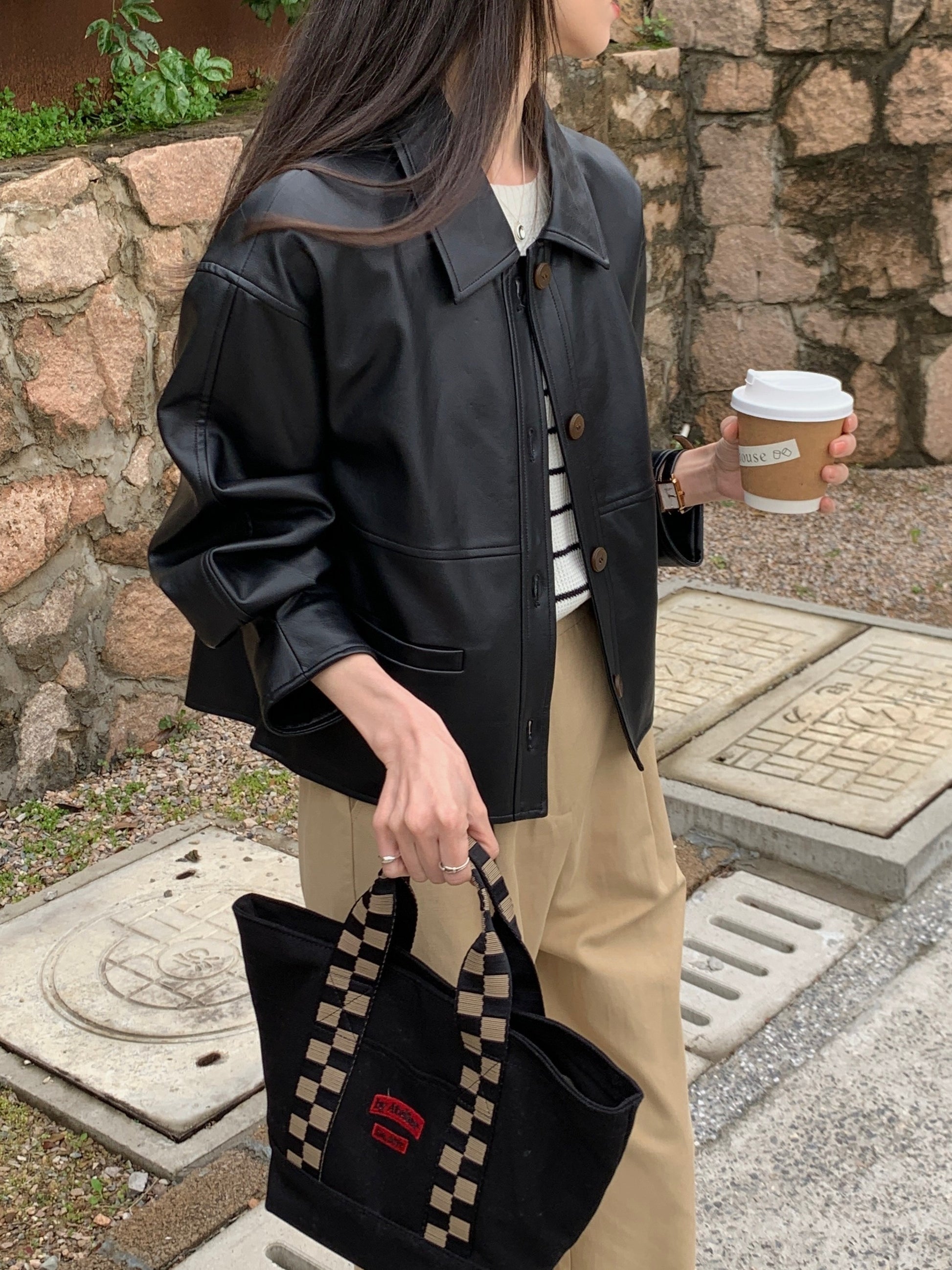 vlovelaw Solid Cropped PU Jacket, Vintage Button Front Long Sleeve Outerwear, Women's Clothing