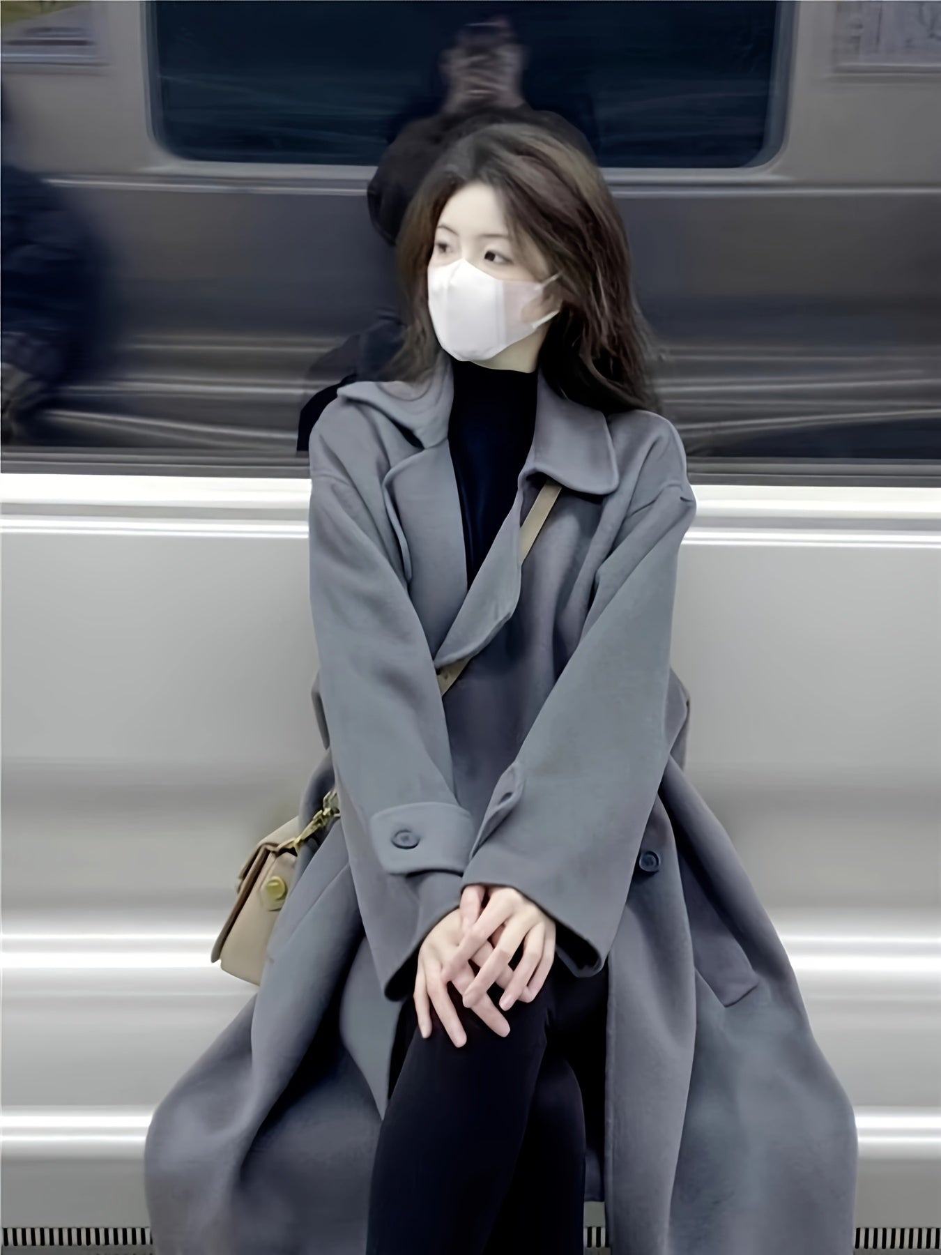 vlovelaw Solid Lapel Loose Elegant Overcoat, Versatile Long Sleeve Outwear For Fall & Winter, Women's Clothing