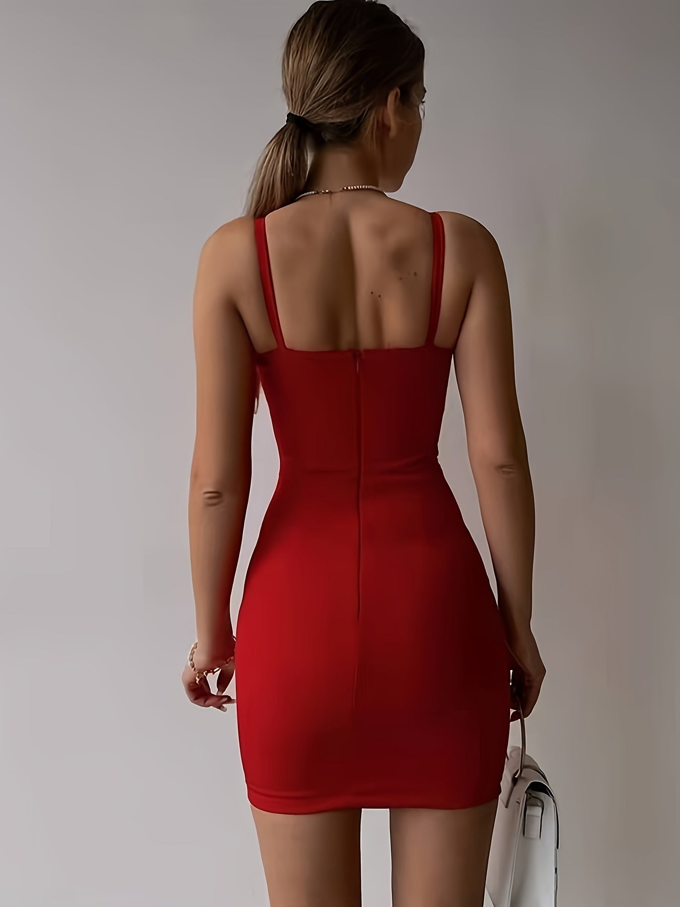 vlovelaw Solid Spaghetti Strap Dress, Elegant Backless Bodycon Dress For Spring & Summer, Women's Clothing