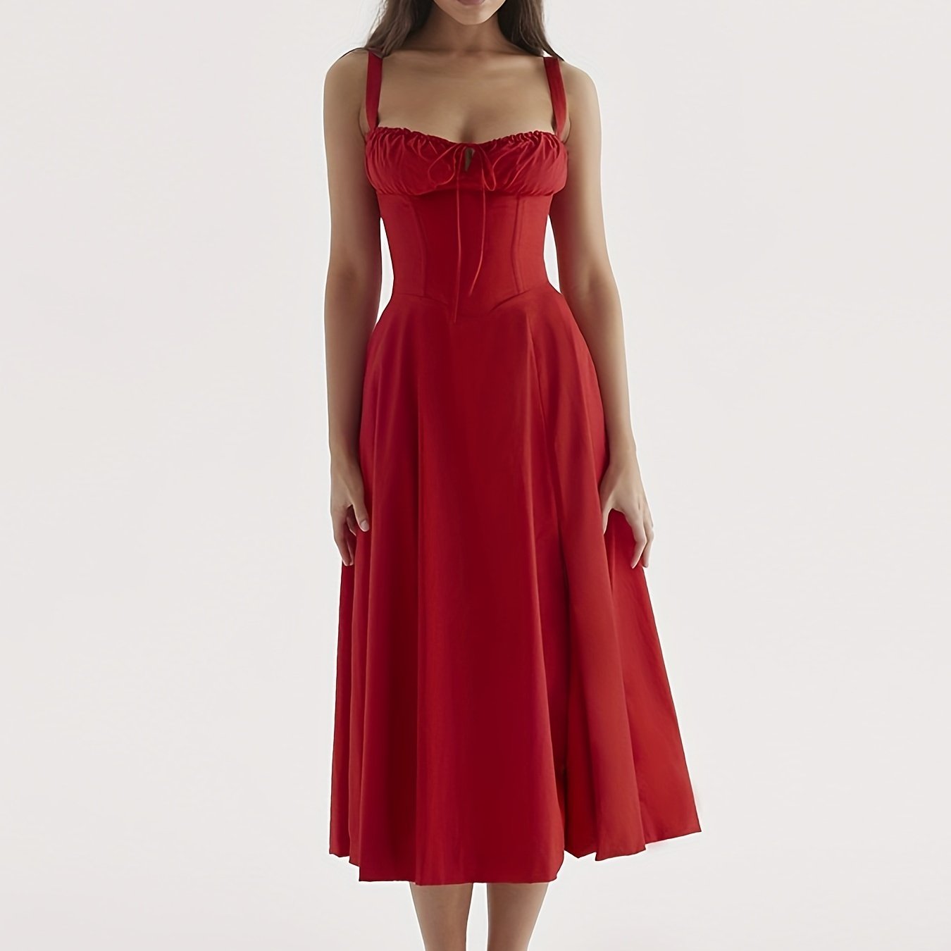 vlovelaw Solid Tie Neck Dress, Elegant Sleeveless A-line Cami Dress For Spring & Summer, Women's Clothing