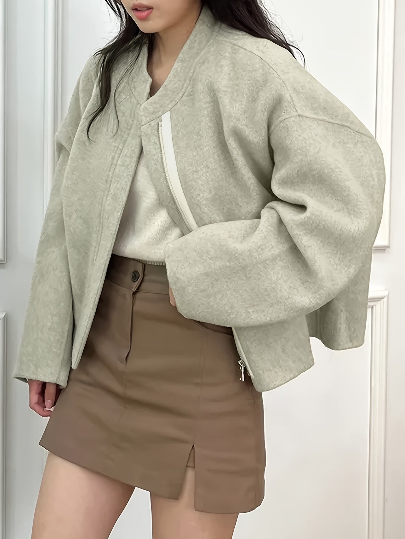 vlovelaw Solid Zipper Front Simple Jacket, Casual Long Sleeve Outwear For Fall & Winter, Women's Clothing