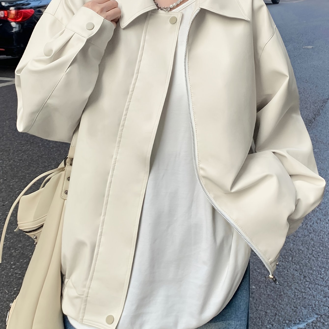 vlovelaw Solid Zipper Simple Jacket, Casual Long Sleeve Outwear For Fall & Winter, Women's Clothing