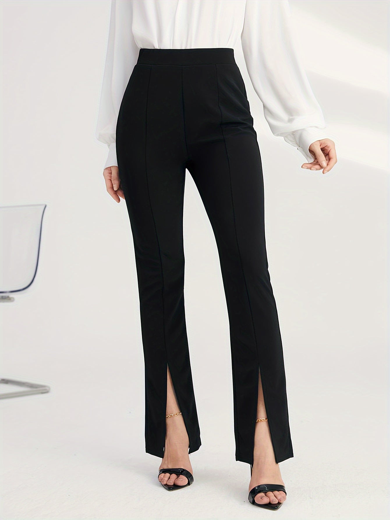 vlovelaw Split Hem Flare Leg Pants, Casual High Waist Bootcut Pants For Spring & Summer, Women's Clothing