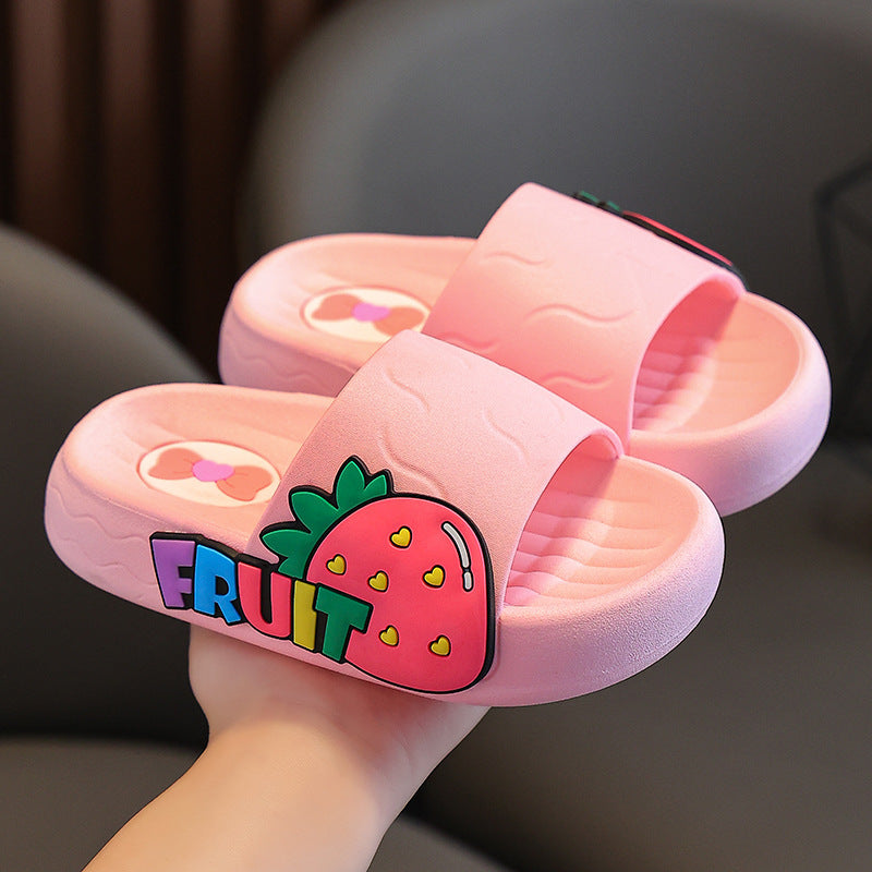 VLOVELAW Summer Girls Children's Slippers Middle and Big Children Boys Indoor Non Slip Outdoor Strawberry Princess Cute Cartoon Children's Slippers