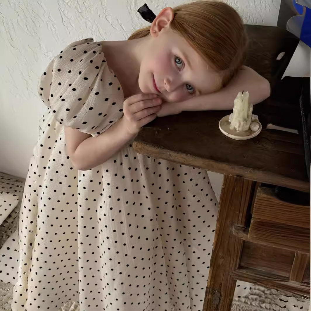 VLOVELAW Summer New Children's Clothing Girls' Polka Dot Princess Dress Children's Birthday Dress Dress