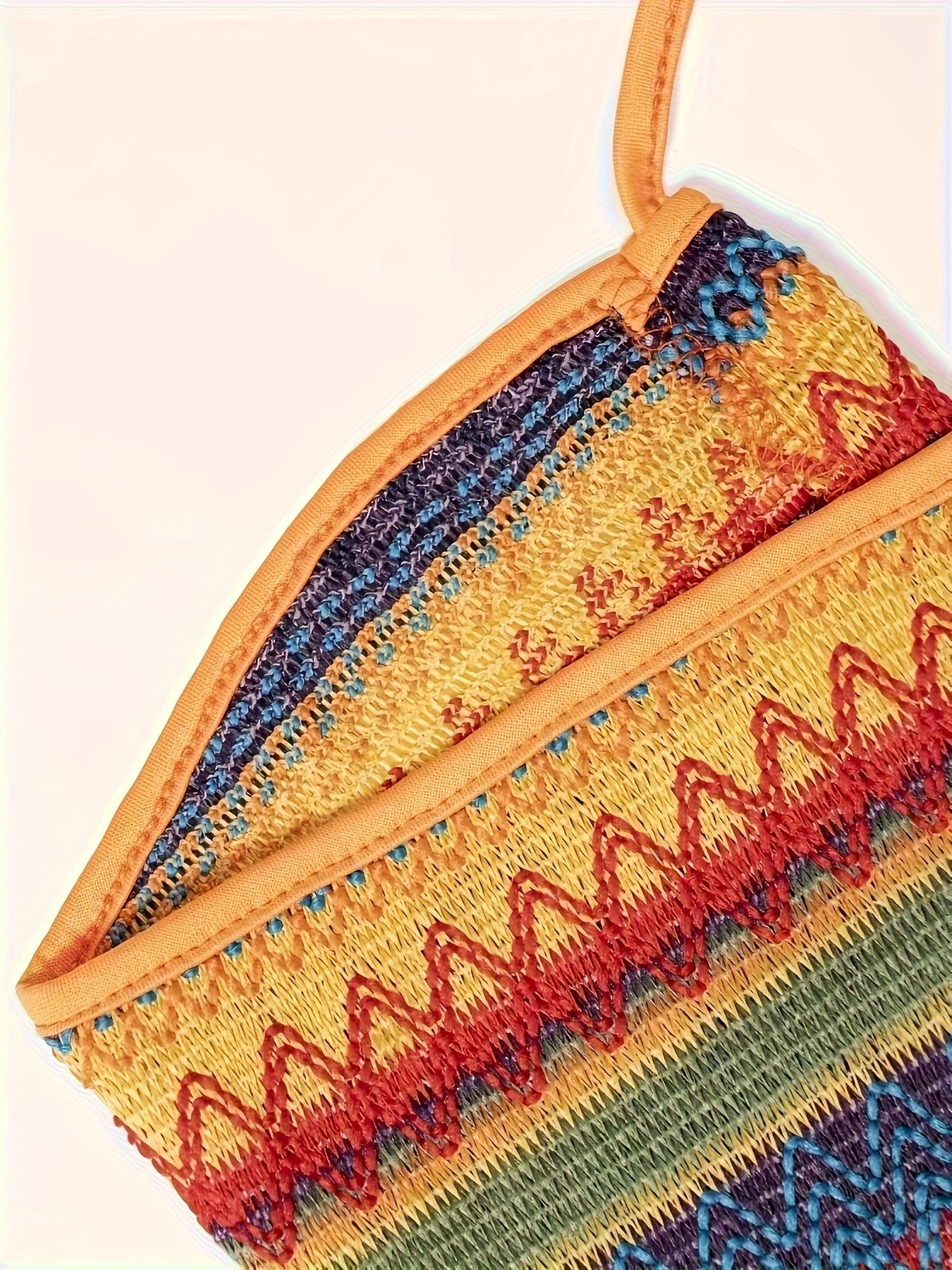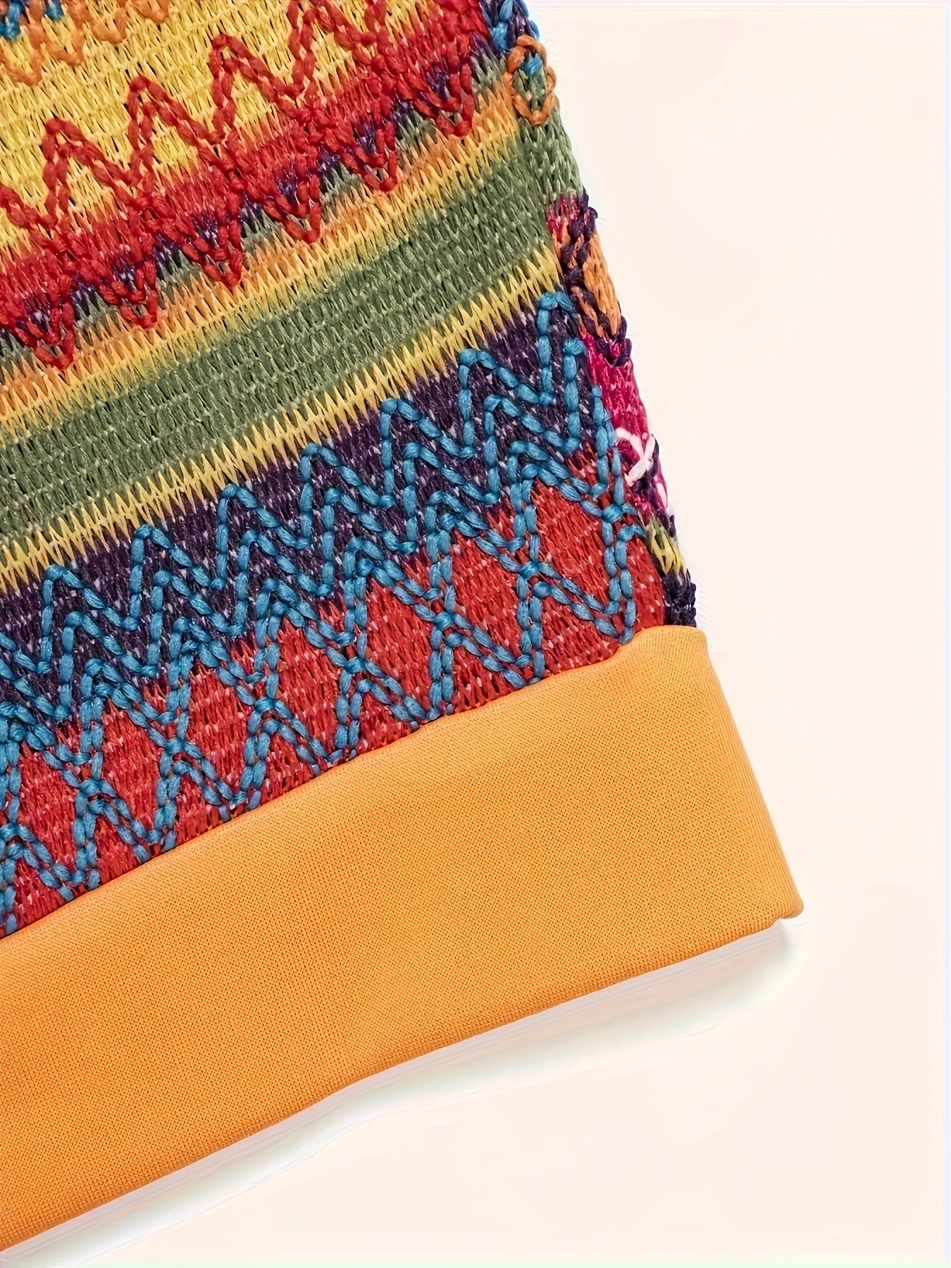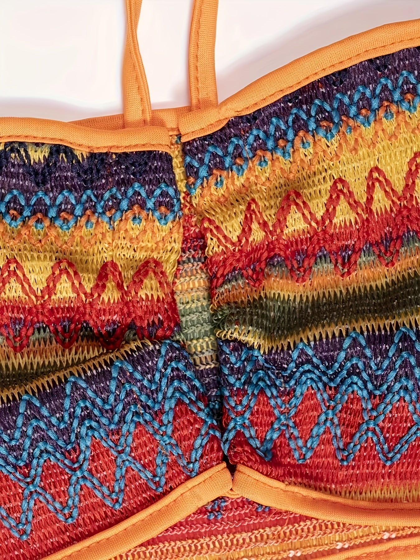 vlovelaw Vacation Tribal Knit Slim Skirt Set, Crop Keyhole Halter Neck Top & High Waist Bodycon Slim Skirt Outfits, Women's Clothing
