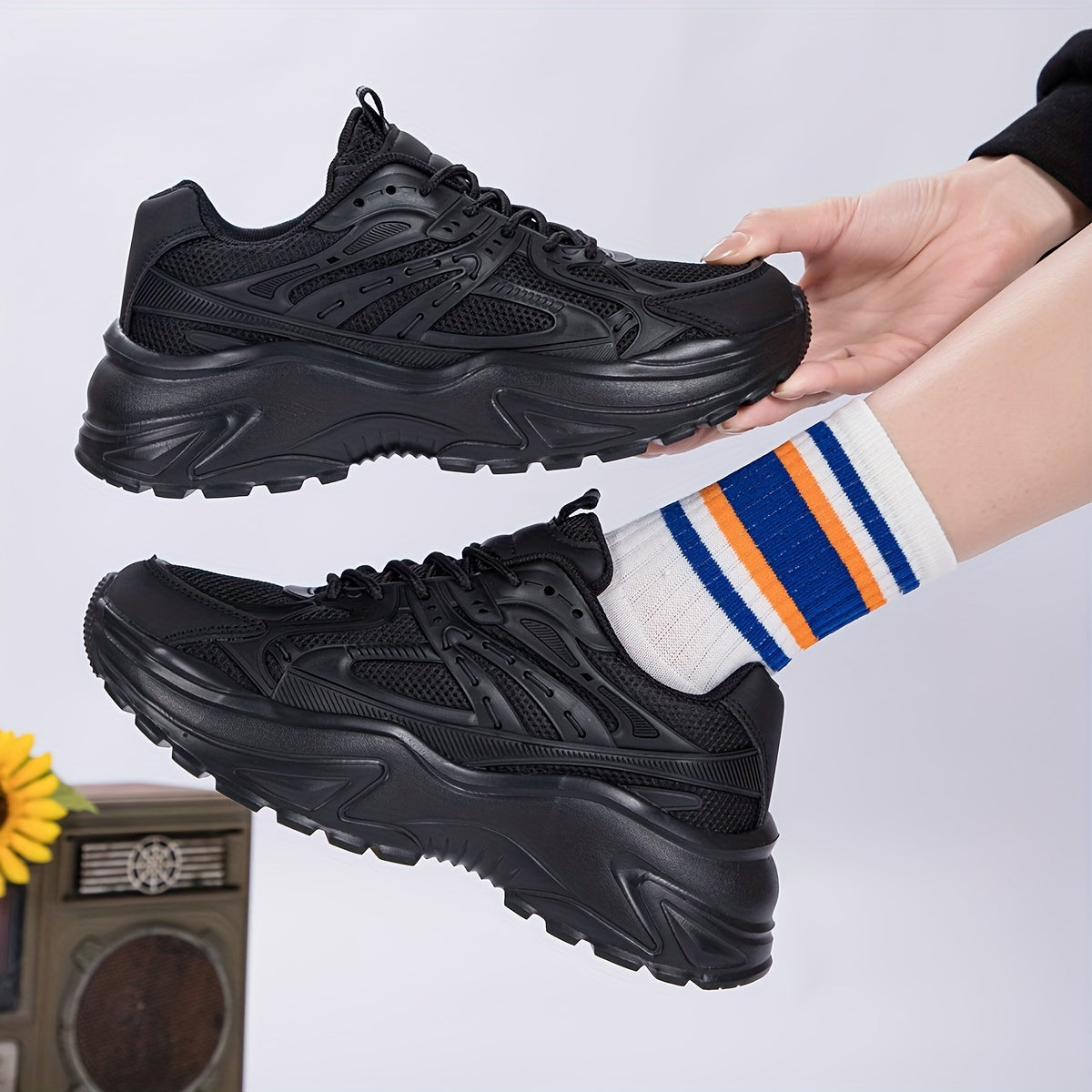 vlovelaw Women's Trendy Chunky Sneakers, Solid Color Lace Up Low Top Sports Shoes, Casual Running & Walking Trainers