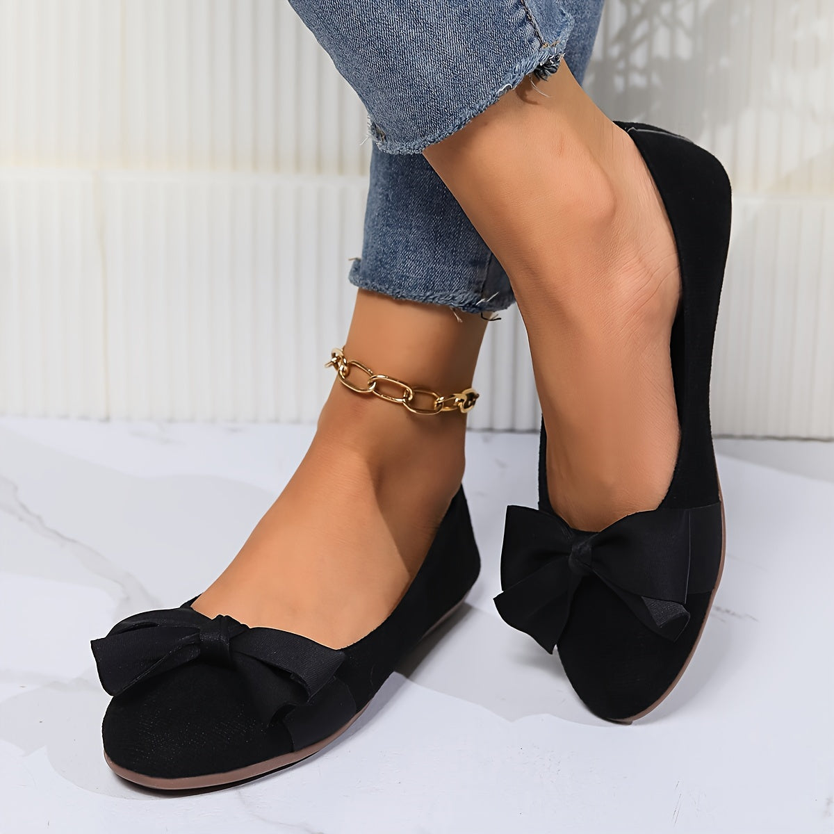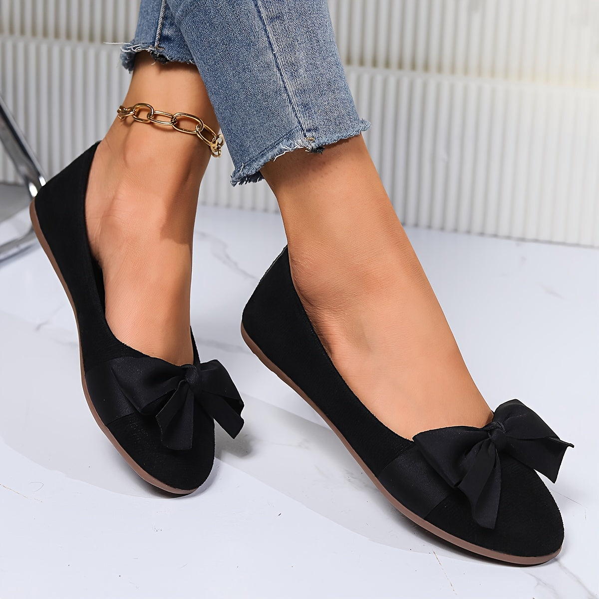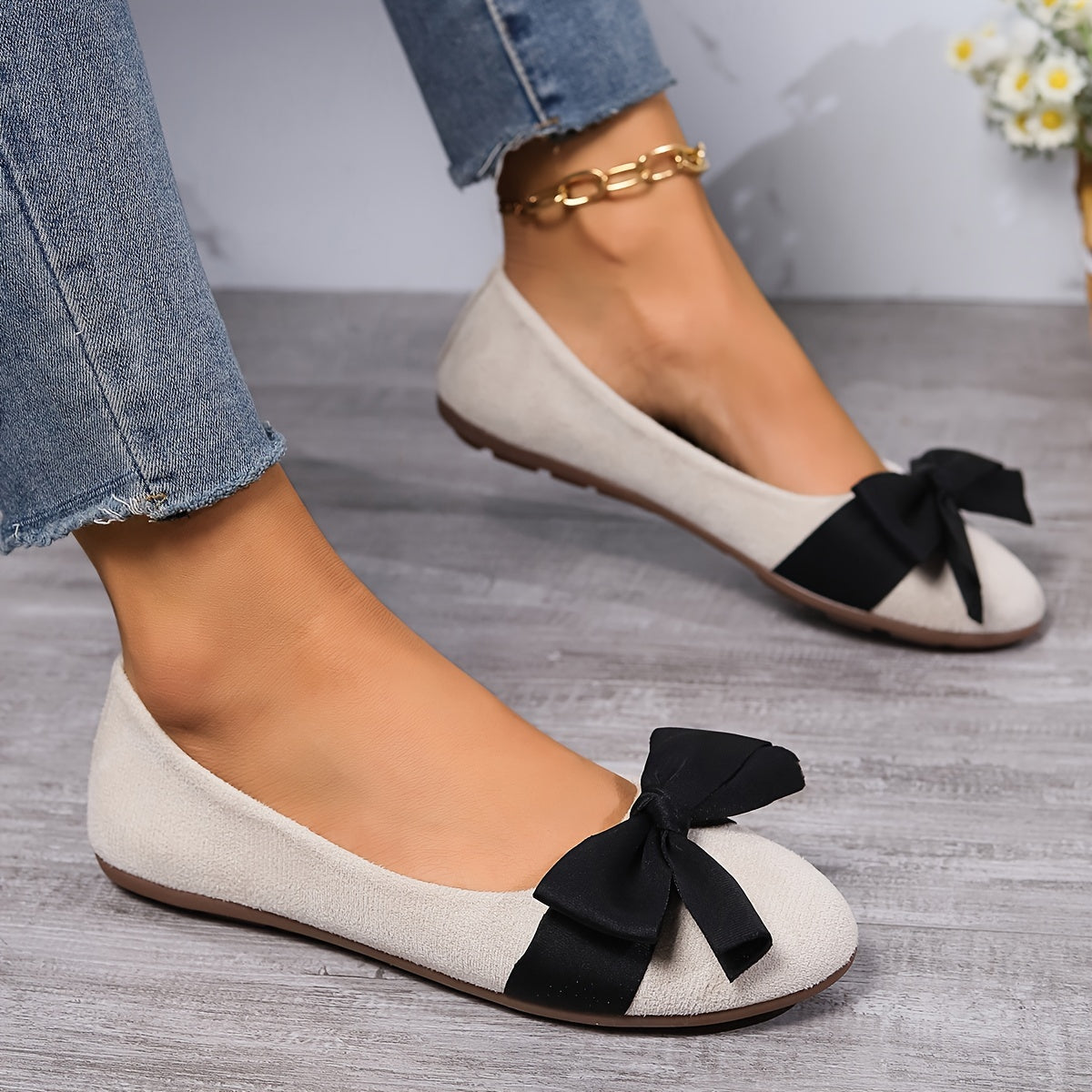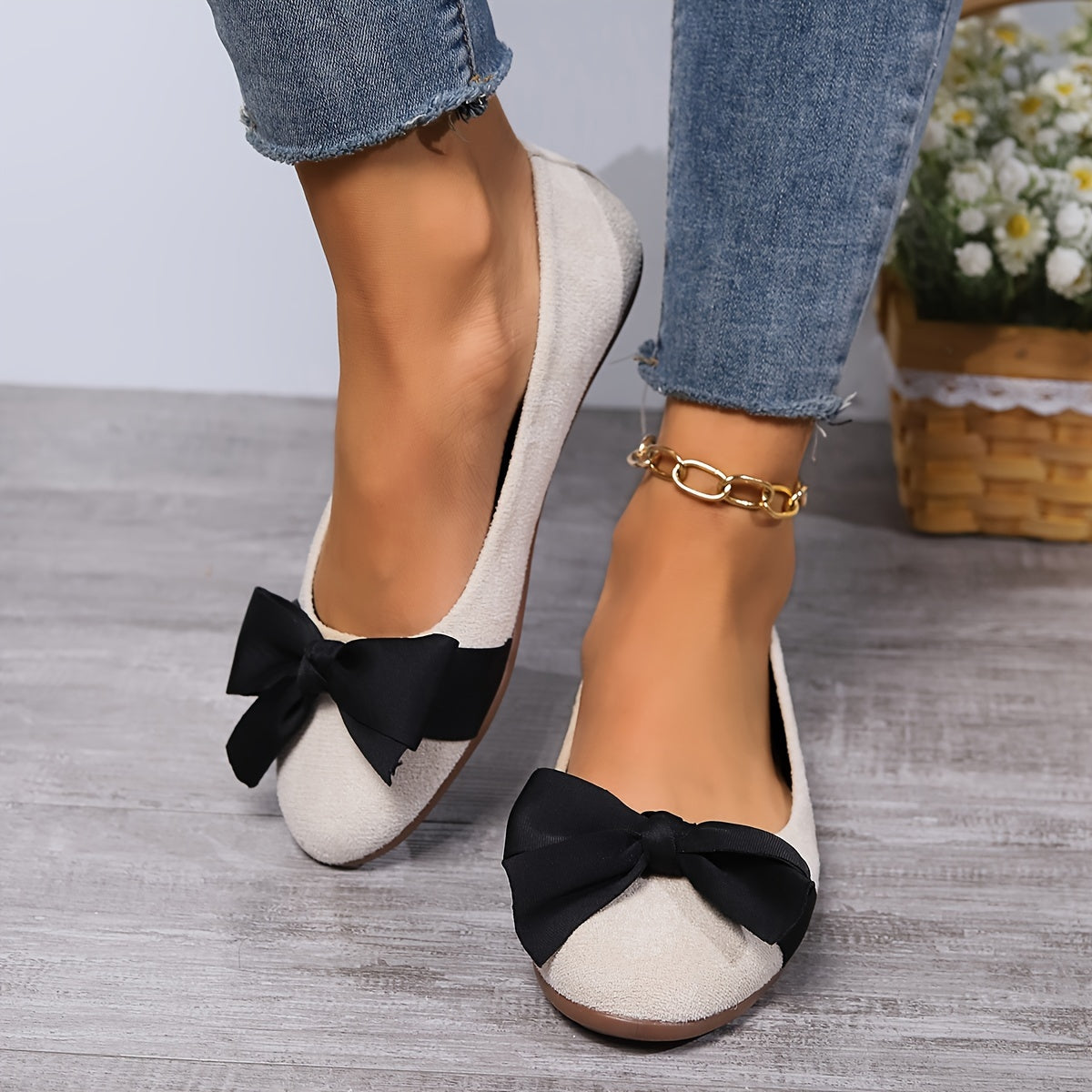 Womens Elegant Wide-Fit Soft-Sole Bow-Knot Flats - Lightweight, Comfortable, Breathable Fabric Shoes with Round Toe, Slip-On Closure, and Rubber Sole for All-Season Wear