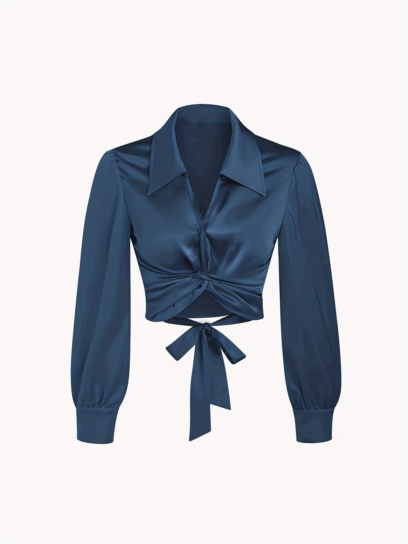 Y2K Lantern Sleeve Cross Shirts, Casual Solid V Neck Night Out Blouses Tops For Party & Club, Women's Clothing