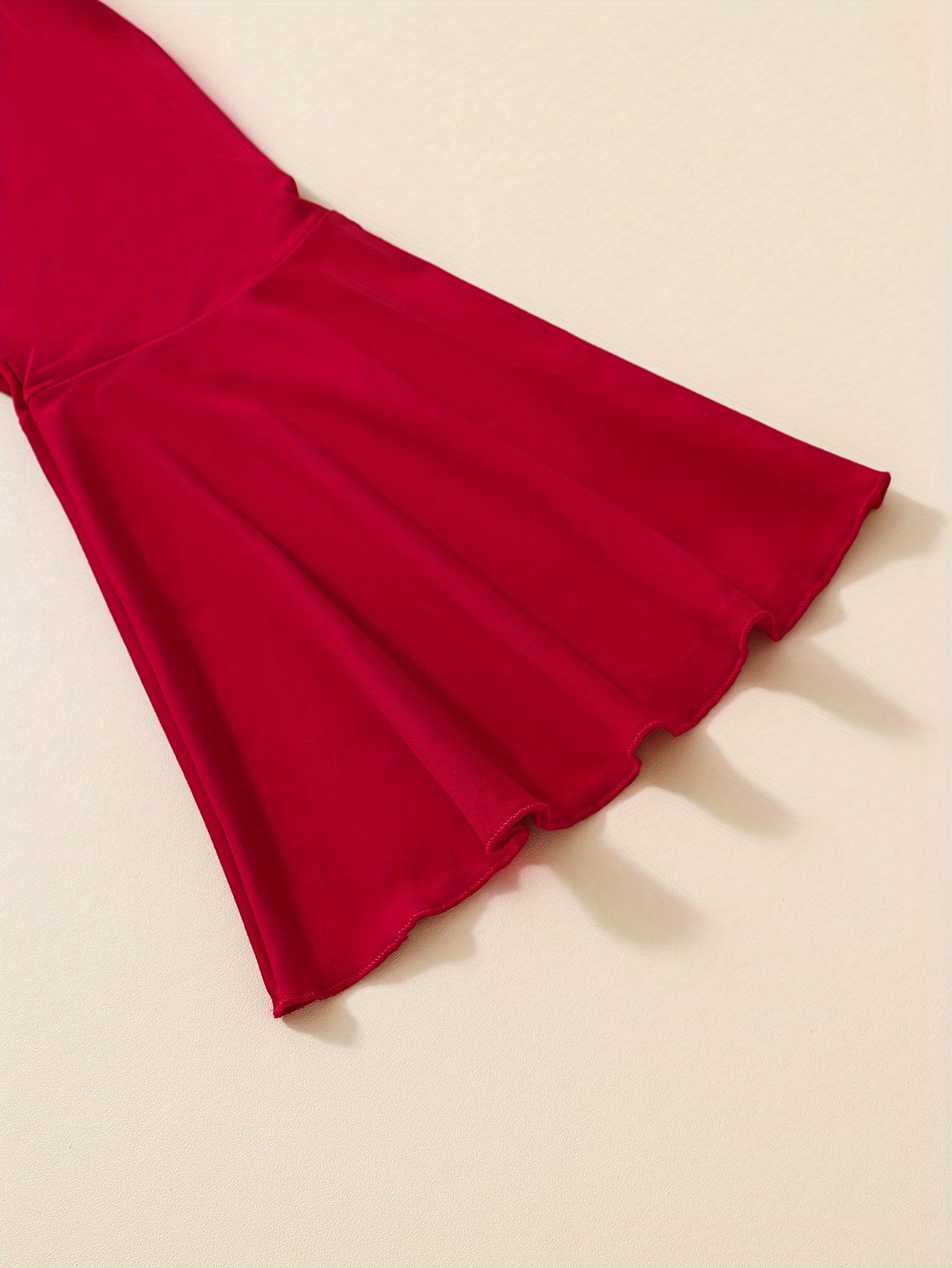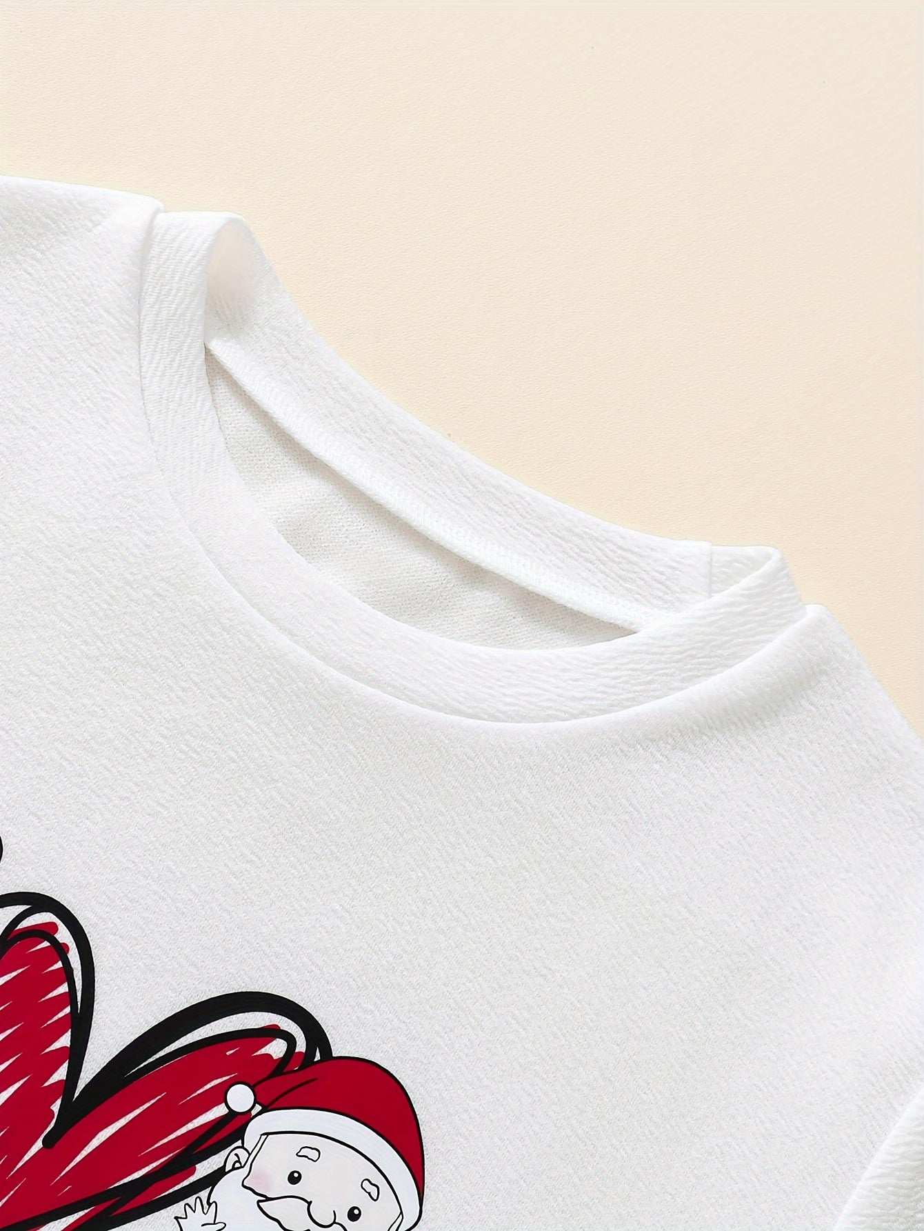 Youngsters's 8-12Y Christmas Series Printed Top + High Elastic Bell Pants 2pcs Set, Perfect for Outdoor