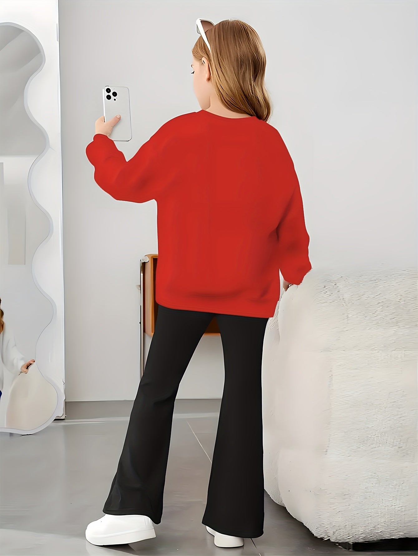 Youngsters's Fashion Christmas English Print Two-piece Set Round Neck Hoodie and Trumpet Pants, Perfect for Outdoor